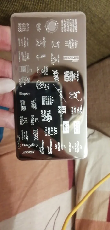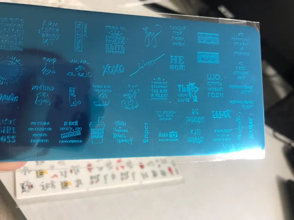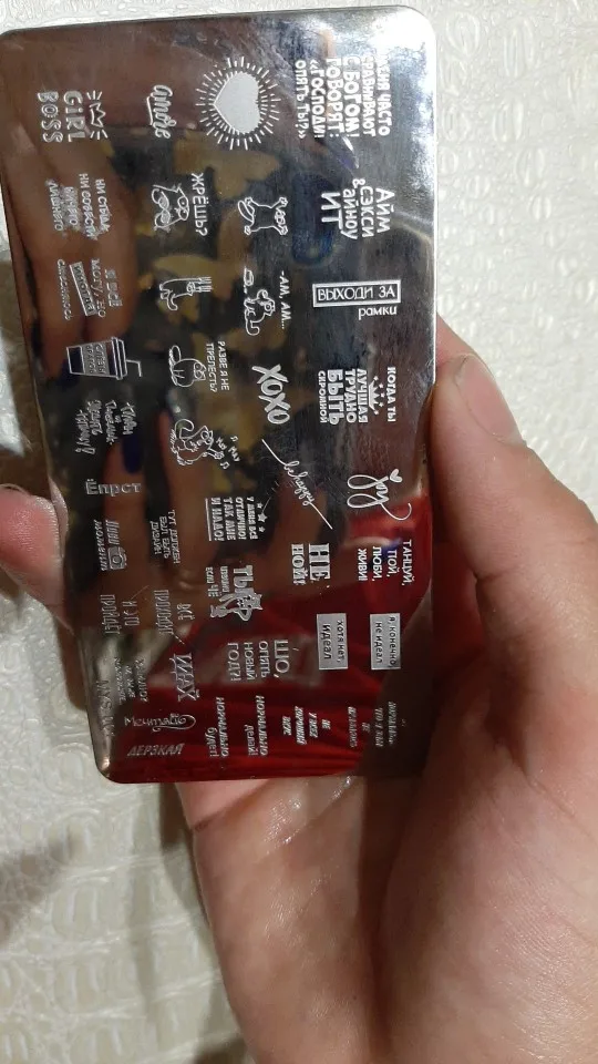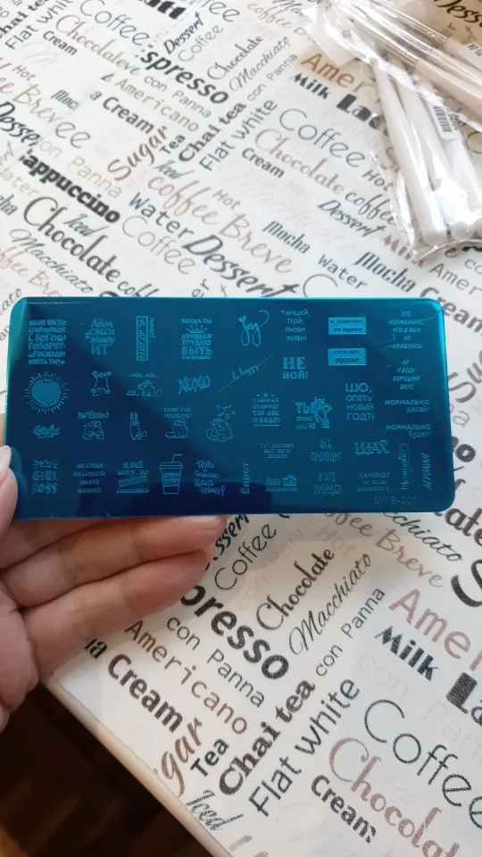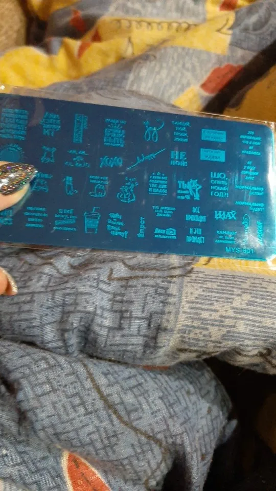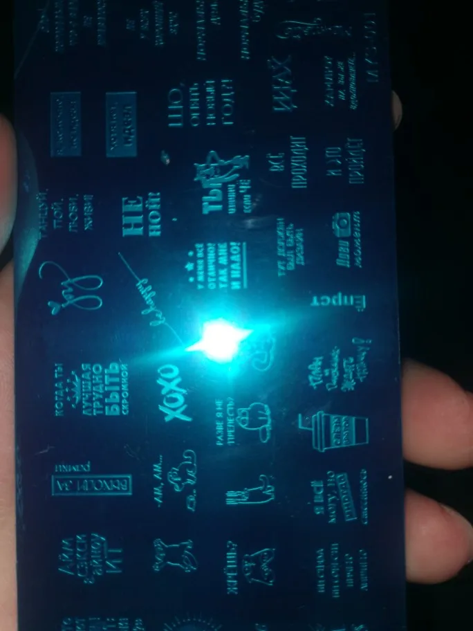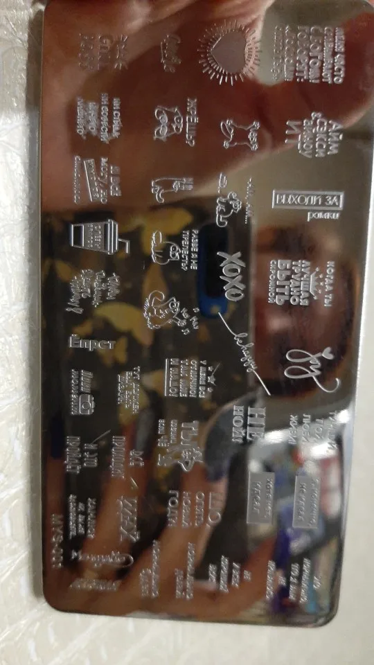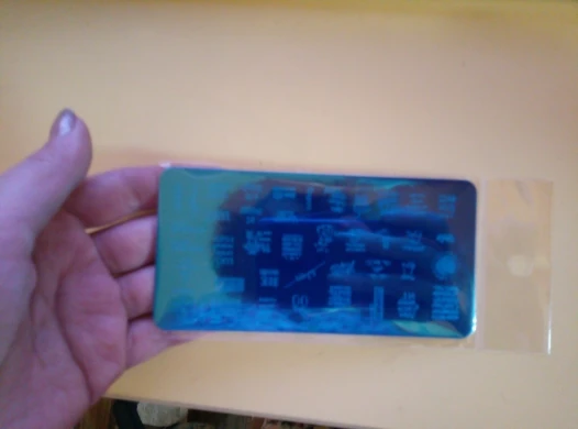 Пластинка хорошая, но я ожидала, что будет побольше размером) Рисунок четкий, без царапин, лак отдаёт хорошо. Довольна заказом. А ещё довольна быстрой доставкой. Заказала 28.11, получила 17.12. Хотя изначально не предполагала, что к новому году успеет!
