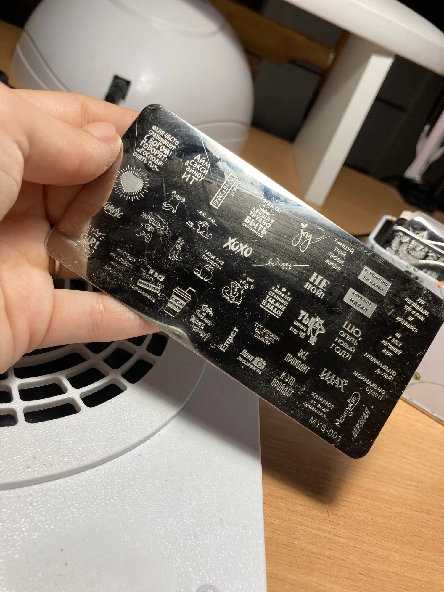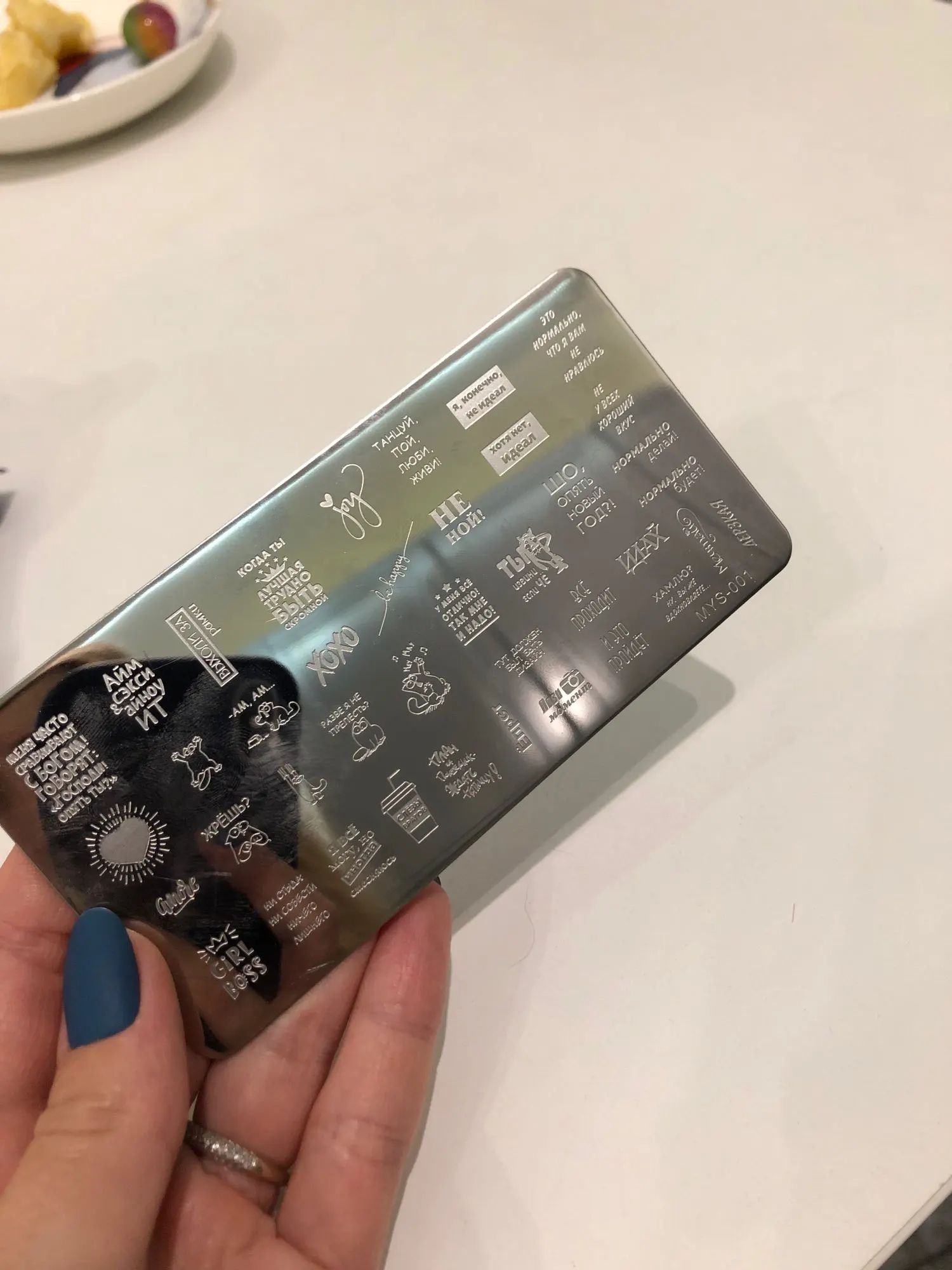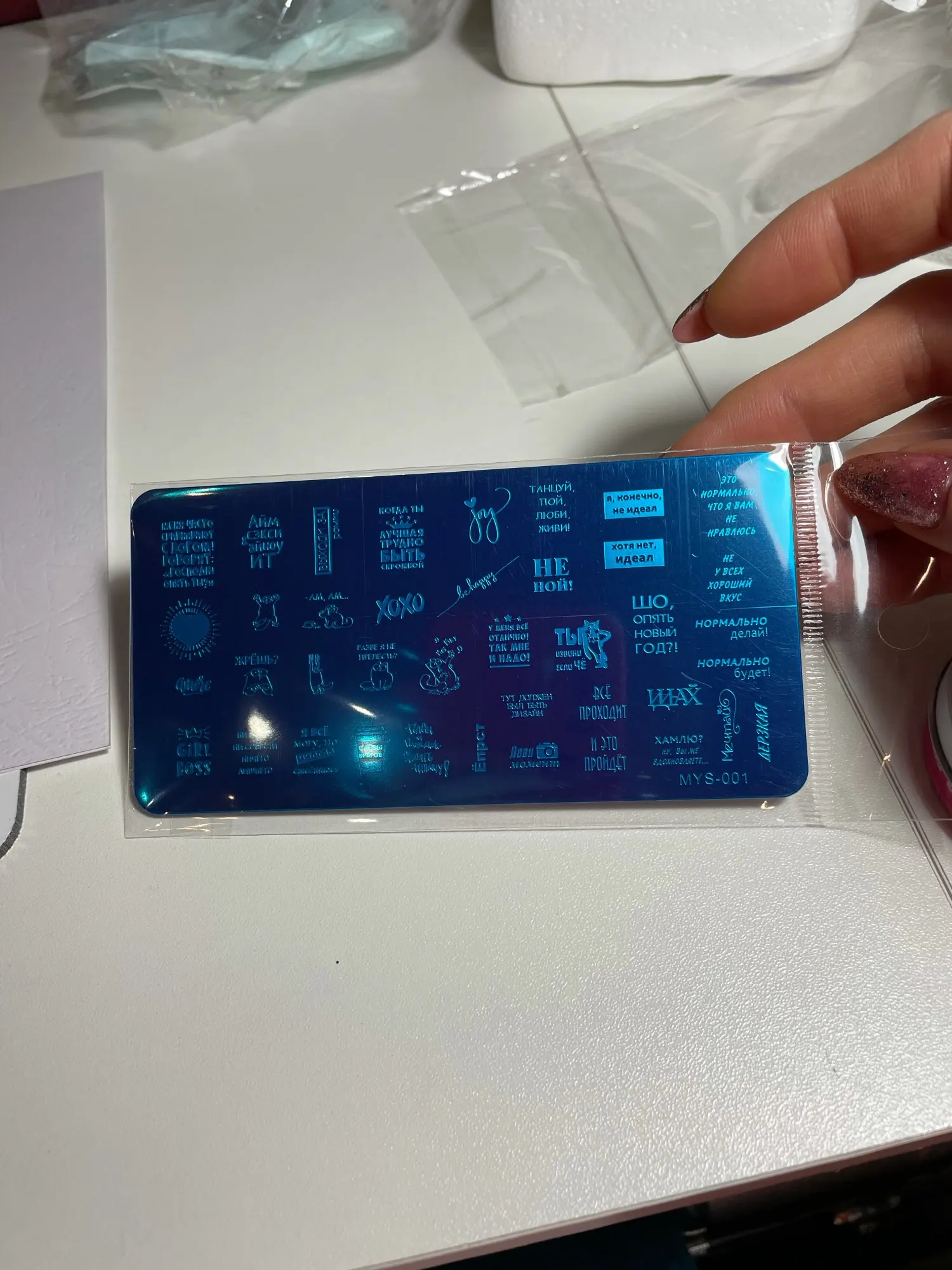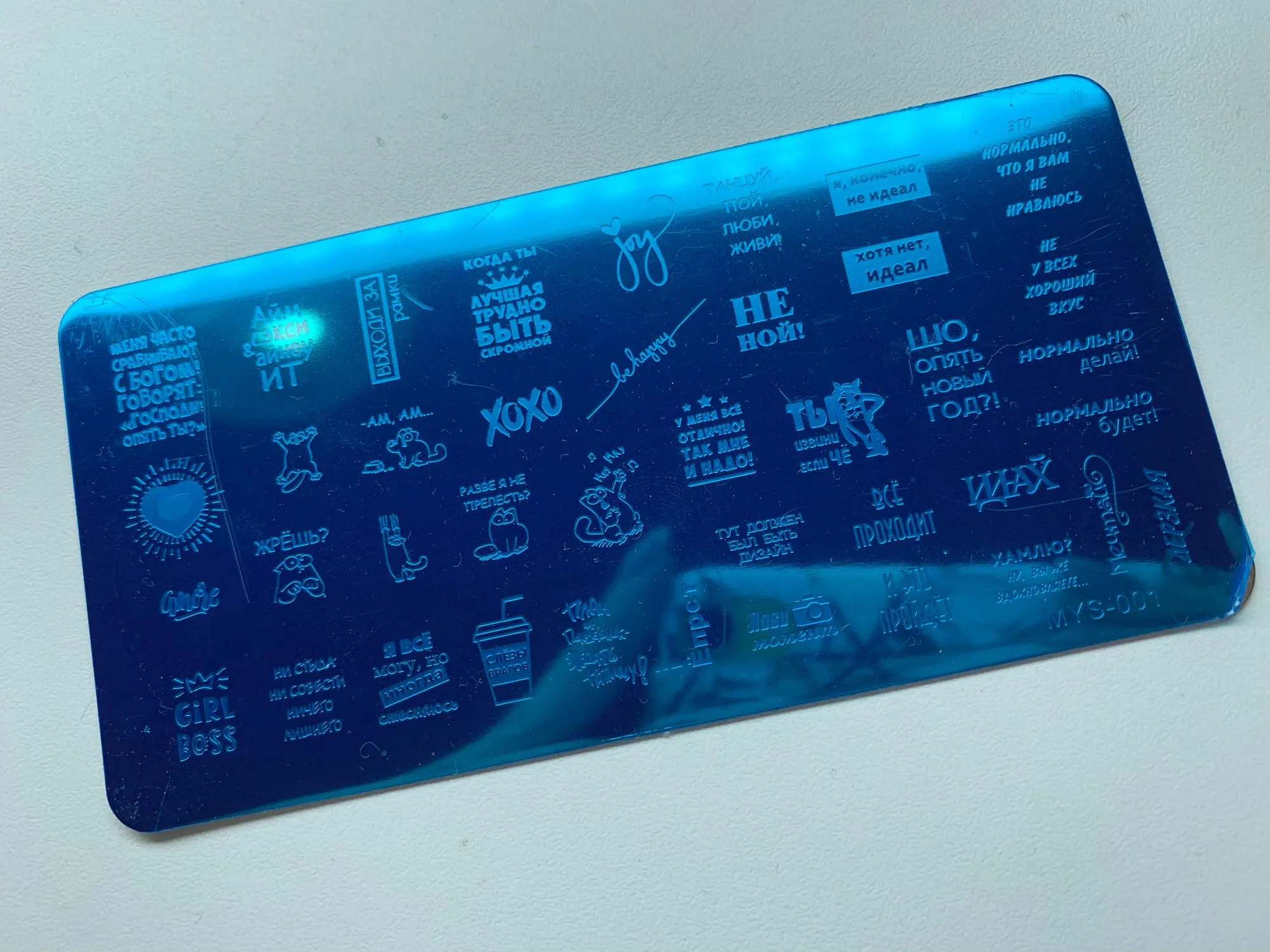 Пластинка хорошая, но я ожидала, что будет побольше размером) Рисунок четкий, без царапин, лак отдаёт хорошо. Довольна заказом. А ещё довольна быстрой доставкой. Заказала 28.11, получила 17.12. Хотя изначально не предполагала, что к новому году успеет!