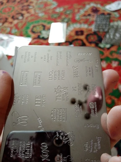 Пластина с четкой гравировкой, все отпечатывается, правда 2 рисунка поцарапаны и переносятся с царапиной, думаю вина почты, но за такую приемлемую цену и достойное качество это мелкий недостаток, который легко убираю скрапером,покупкой довольна, буду заказывать еще :)