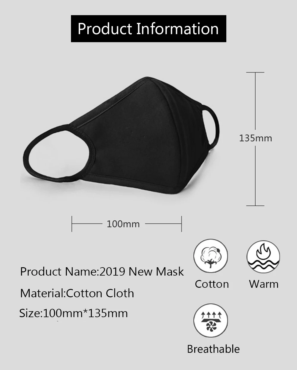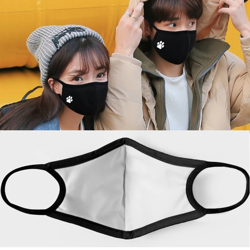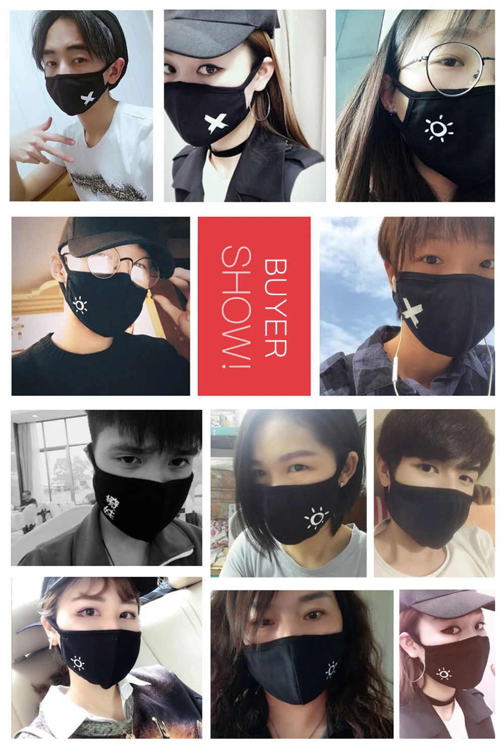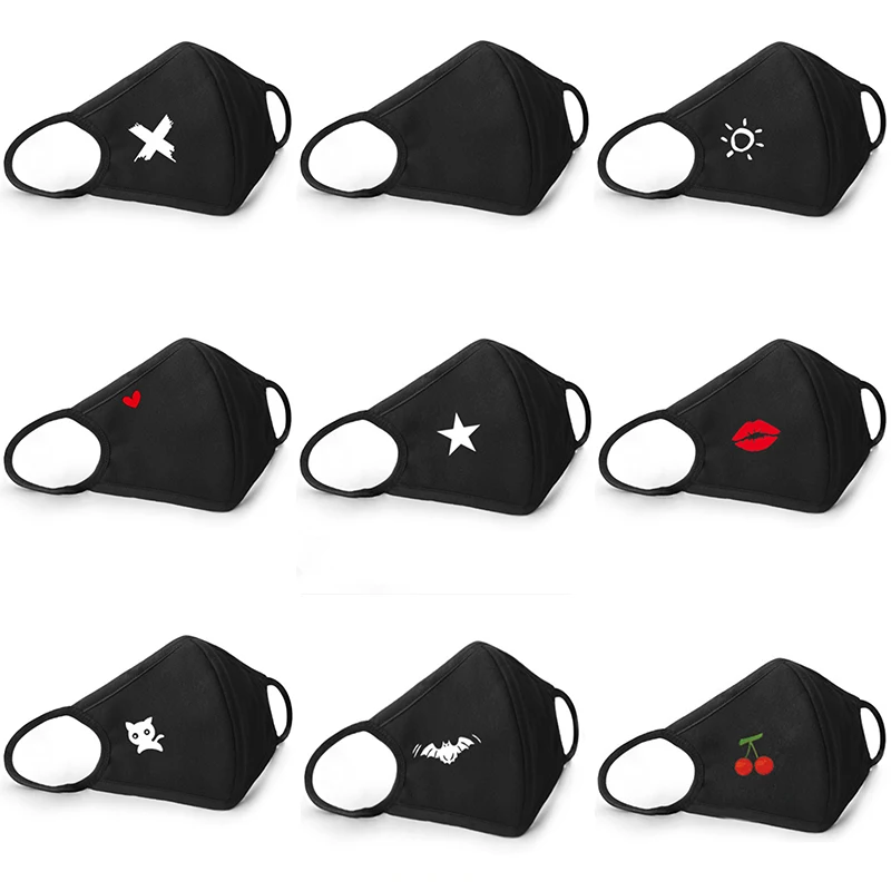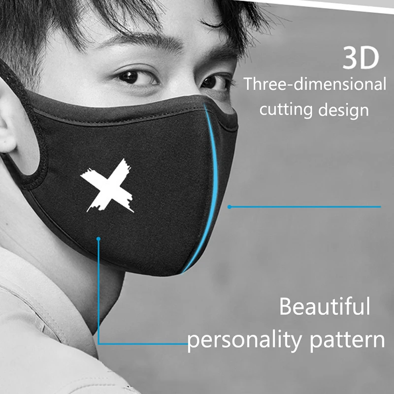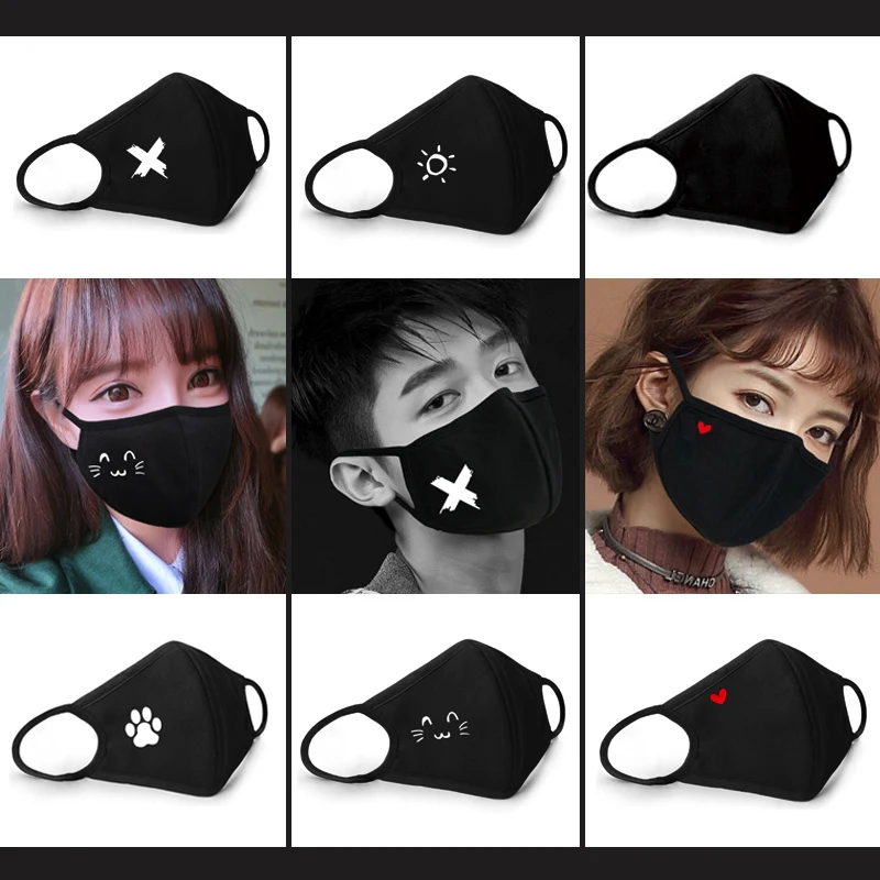 Маска для лица многоразовая из хлопчатобумажной ткани с рисунком аниме, для взрослых, мужчин и женщин, пылезащитная Зимняя Маска для лица с черным узором