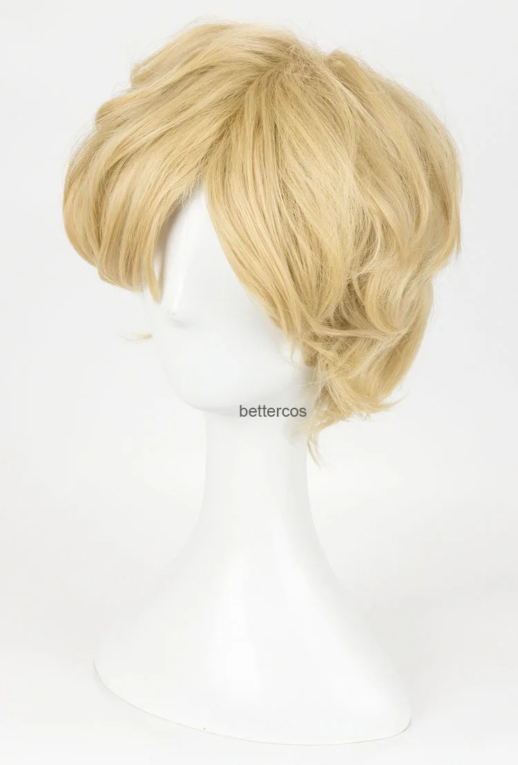 Парик для косплея Сейлор Уран Тено Харука, Короткие льняные светлые термостойкие синтетические волосы + парик