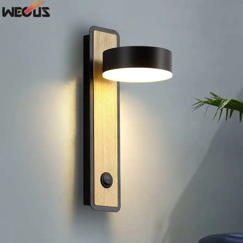 Светодиодный ная настенная лампа с выключателем, современный светильник на стену в скандинавском стиле для спальни, гостиной, коридора, кабинета, бра для чтения с текстурой древесины, 5 Вт