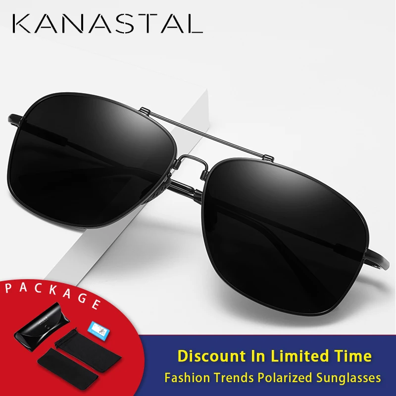 KANASTAL, классические авиационные мужские солнцезащитные очки, фирменный дизайн, сплав, оправа пилота, поляризационные солнцезащитные очки для вождения, мужские, черные, UV400