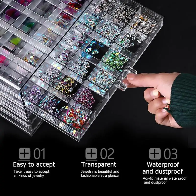 5 слоев, бриллиантовая косметика, прозрачная коробка для хранения украшений для ногтей, органайзер, инструмент для макияжа