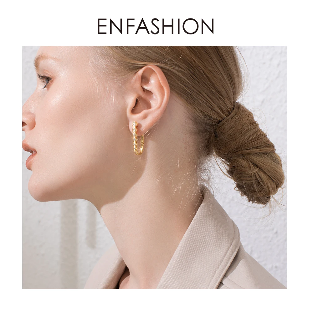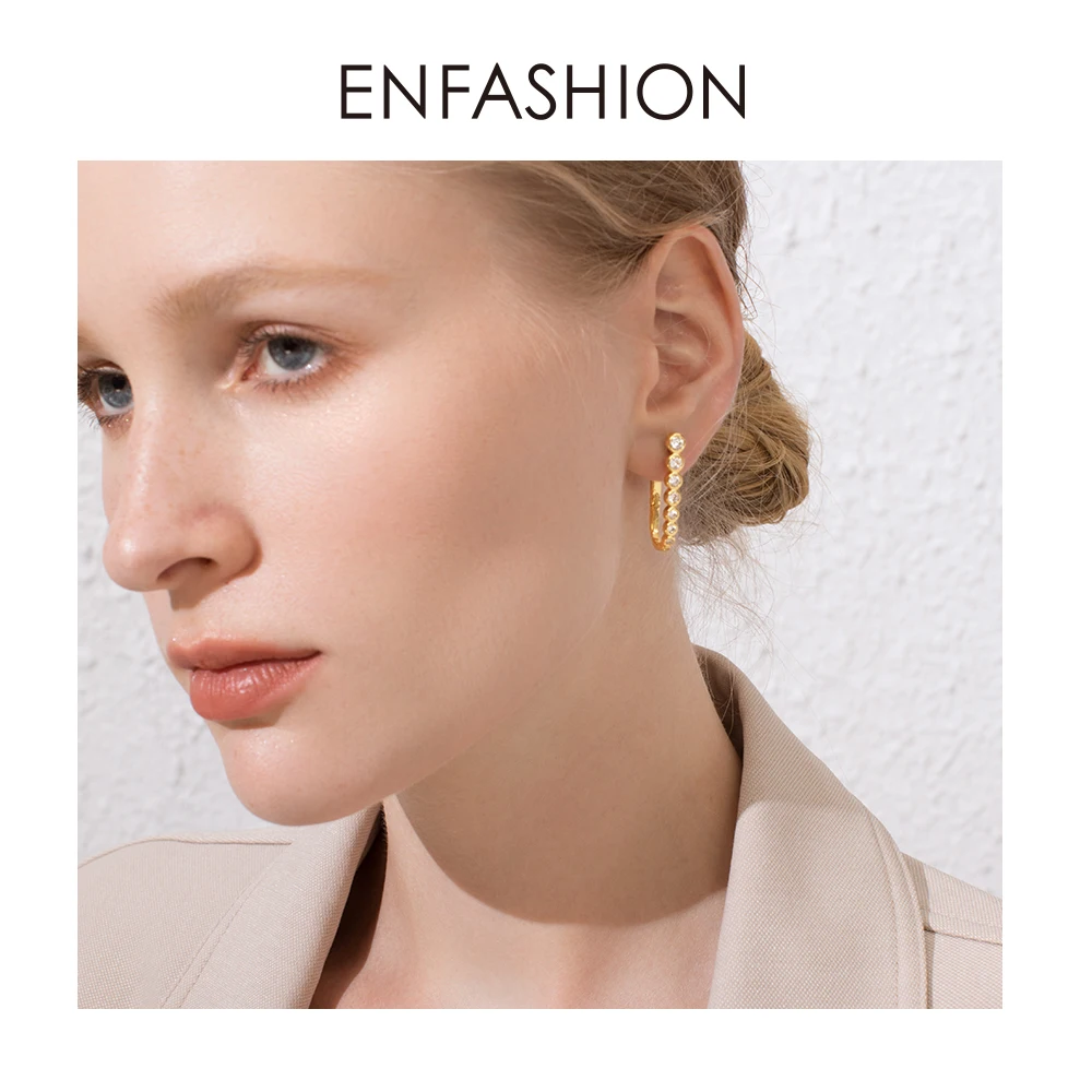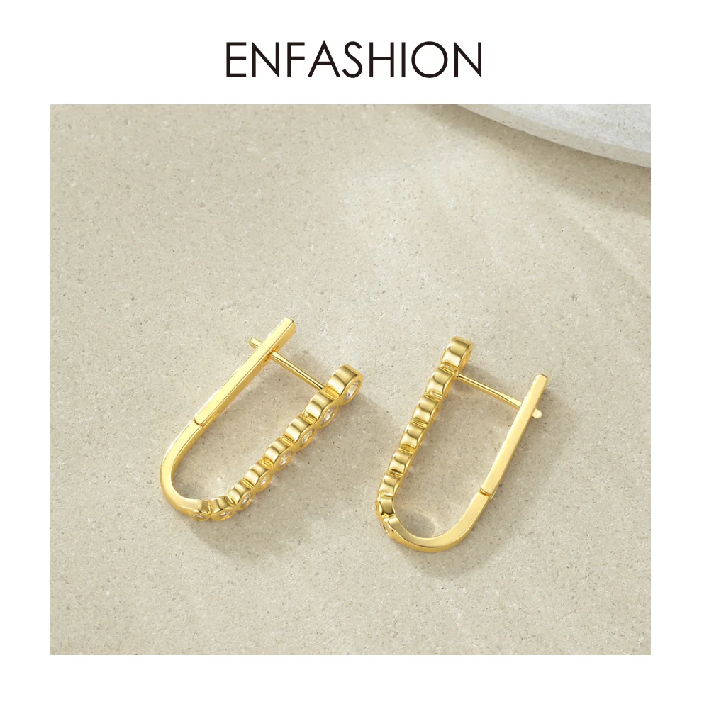Женские простые серьги-кольца с кристаллами ENFASHION, маленькие U-образные серьги золотого цвета с цирконом, модные ювелирные украшения E191100