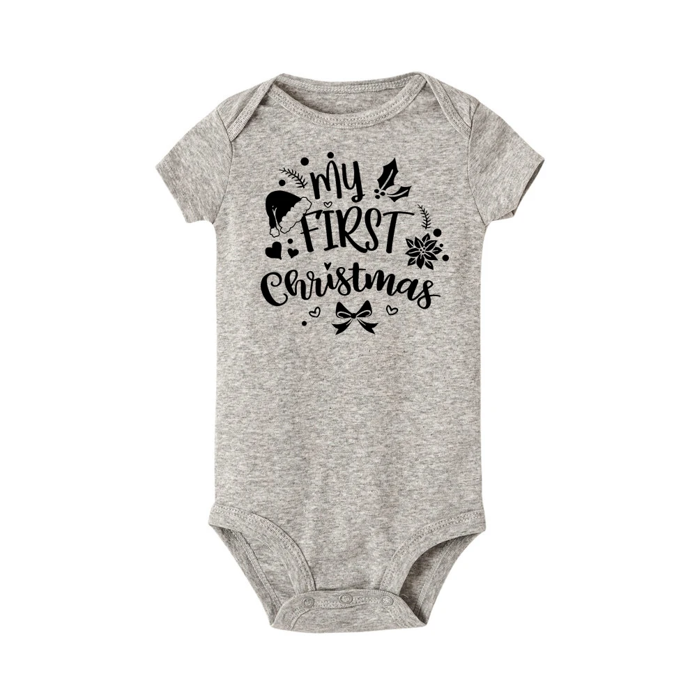 My First Christmas/Хлопковые комбинезоны для новорожденных мальчиков и девочек детское забавное праздничное платье с короткими рукавами Модный комбинезон для малышей