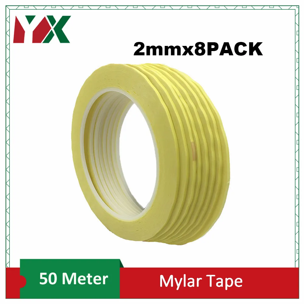 YX 8 Упаковка 2 мм ширина изоляционная майларовая лента обертка для Электродвигатель трансформатора катушки проводника и т. Д. 50 метроврулон желтый