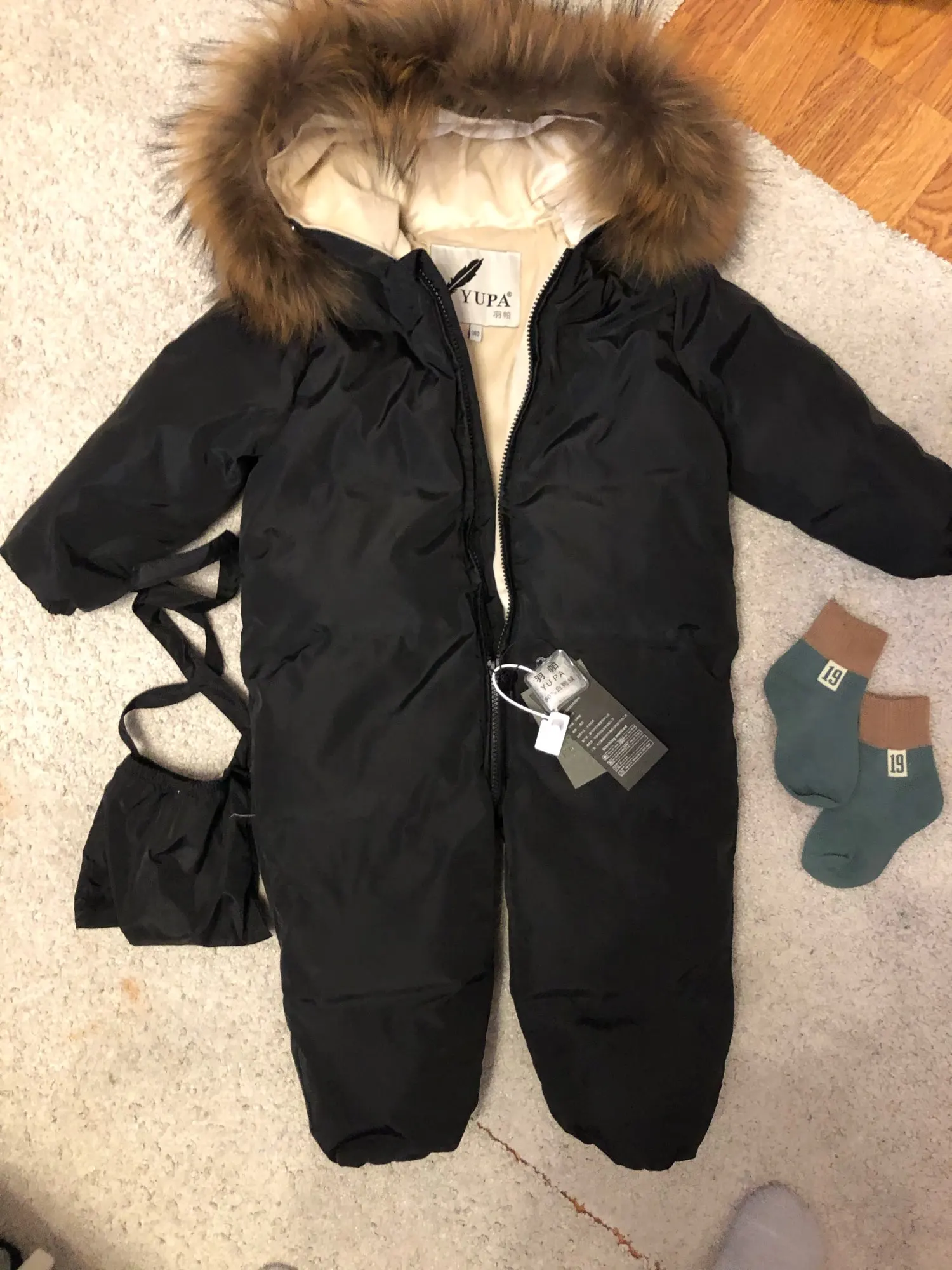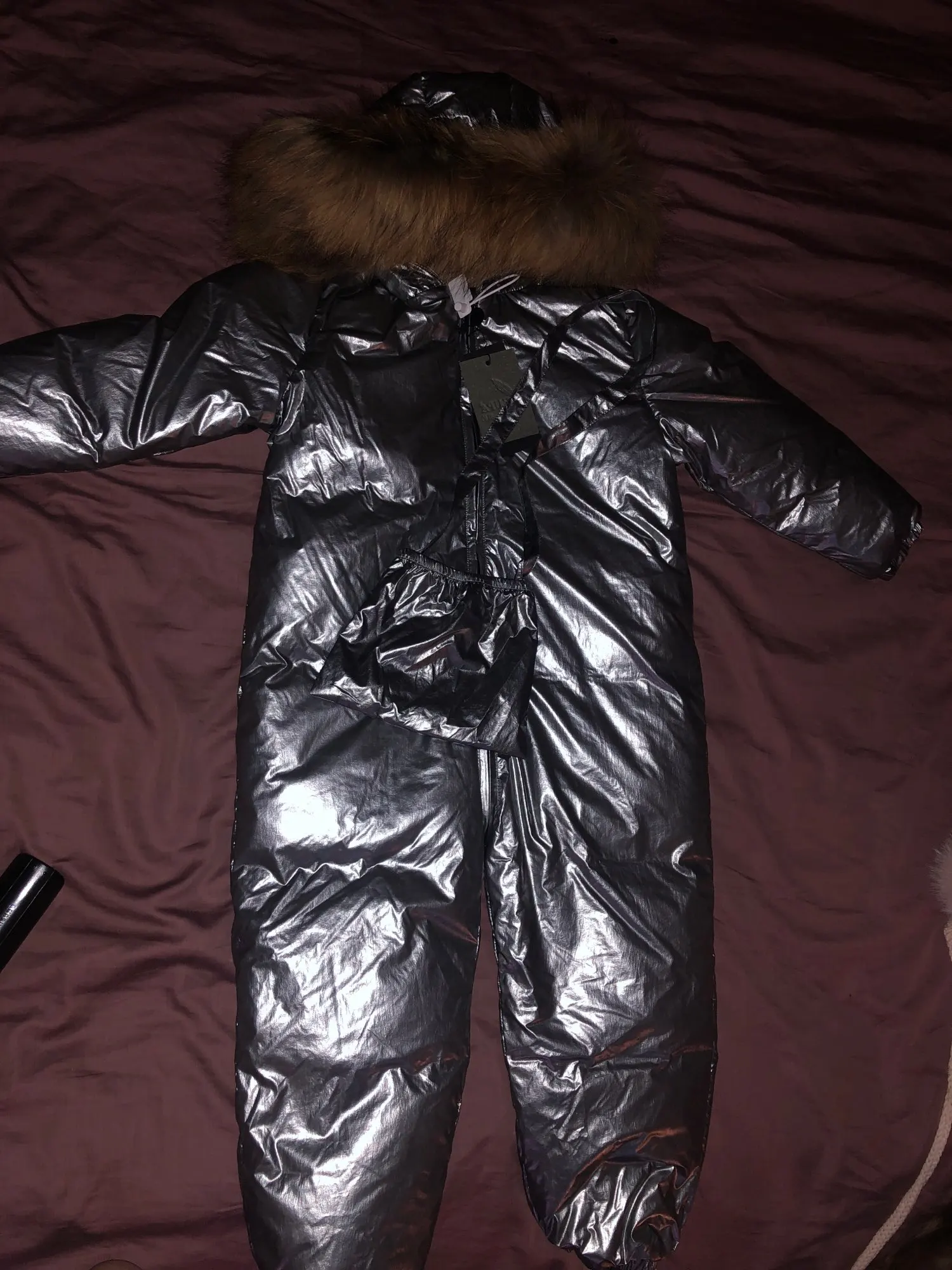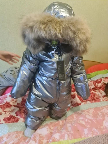 Очень крутой комбенизон- пуховик. Все как на фото даже не вижу смысла фото выкладывать. мех очень густой и пушистый. Ткань прорезиненная его даже стирать не прийдется часто. Пуха много подходит на холода до -15 точно( ну конечно, что то теплое нужно все равно одеть). Внутри теплая подкладка. Очень хорошо и качественно пошит. Ребенок носит его в детский сад испытание прошел хорошо. Грязь легко стирается влажной тряпкой. Выглядит шикарно. доставка мега быстрая ( не смотря на то что бесплатная) до Киева дошло за 2 недели +- "Новой почтой" .На ребенка 3-х лет с ростом 100 брала 120 размер . Получилось с запасом , он не смотрится огромным, это почти не заметно. Так что покупайте не пожалеете. ПРОДАВЦА РЕКОМЕНДУЮ.