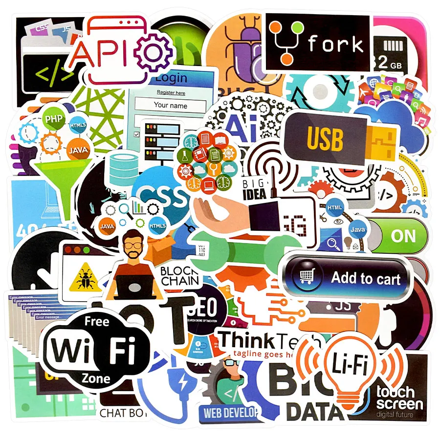 50 шт., программируемый стикер Geek s, Интернет-технология, программное обеспечение, креативная наклейка s для DIY ноутбука, водонепроницаемый стикер