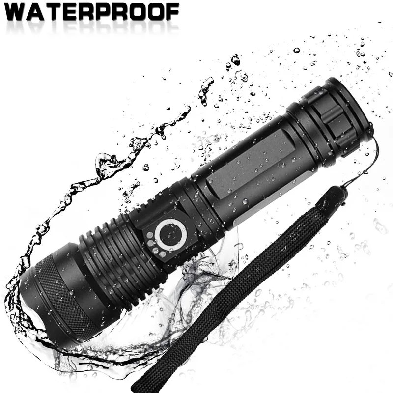 ★Светодиодная лампа: XHP50★5 режимов: 100% освещение-70% освещение-50% освещение-вспышка-SOS★Материал: алюминиевый сплав★Переключатель: нажимной переключатель★Режим зарядки: USB-зарядка★Расстояние освещения: более 300 метров (1000 футов)★Срок службы светодиодный: более 100000 часов