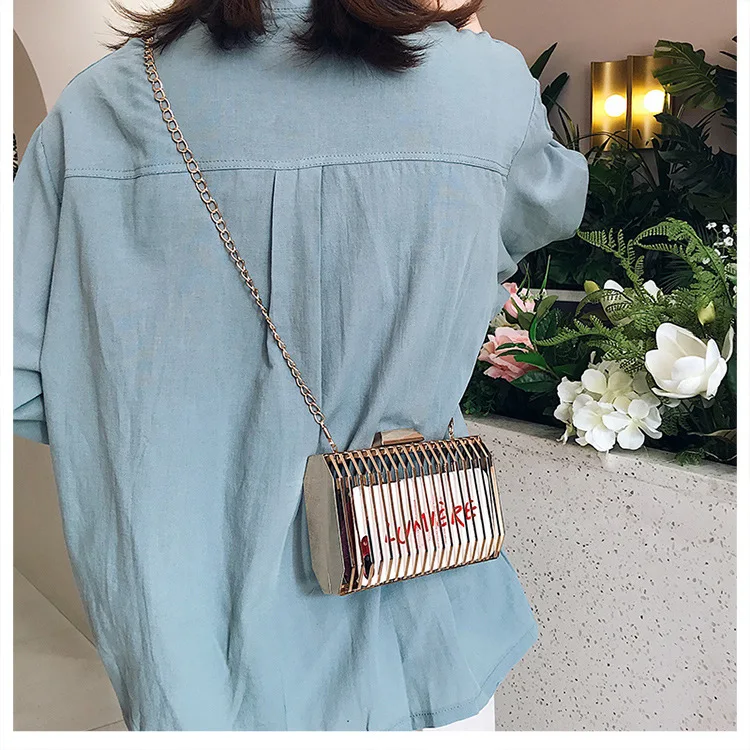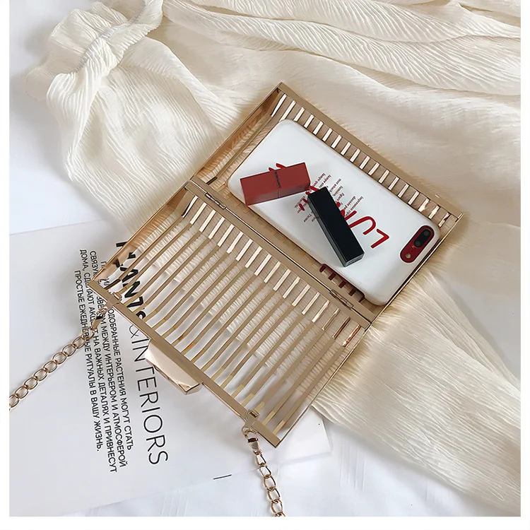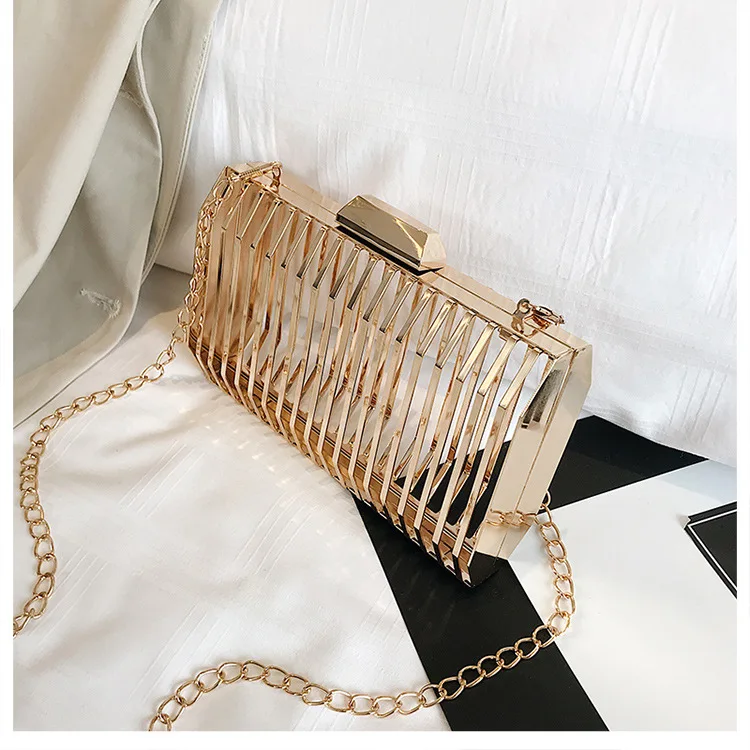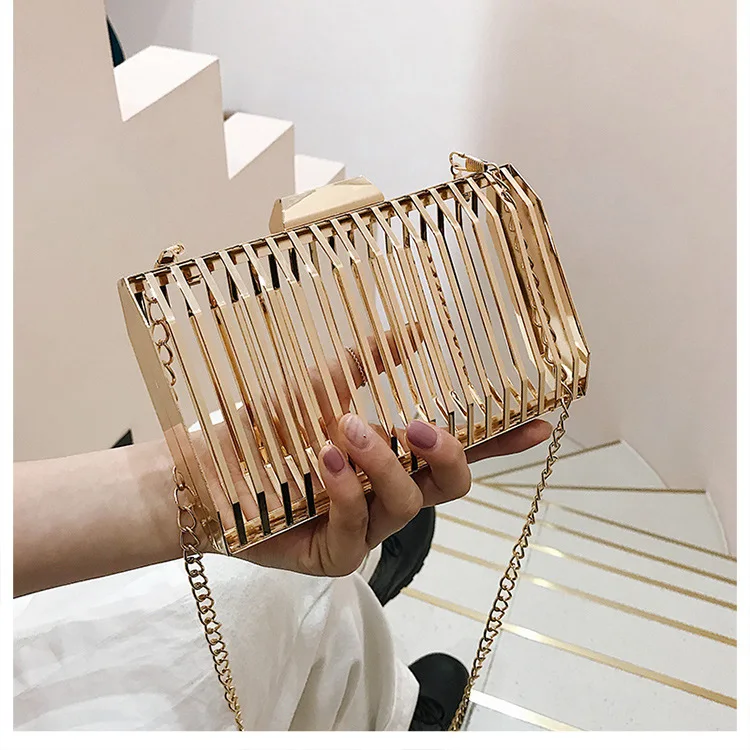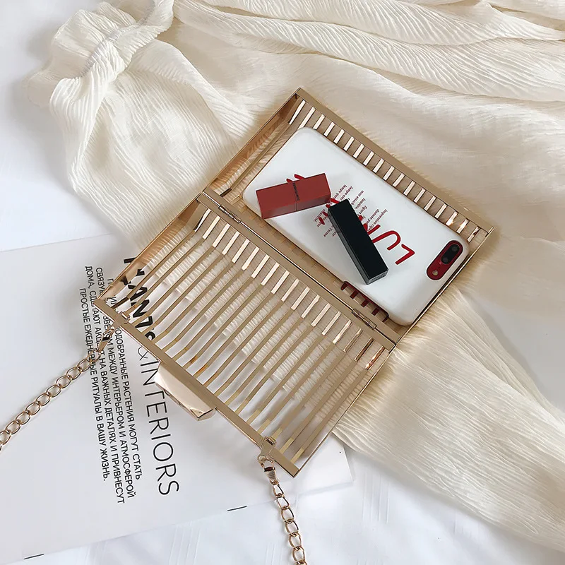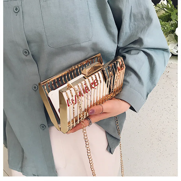 Женская вечерняя сумка-клатч с металлической полой цепочкой, вечерние сумки-мессенджеры через плечо, уникальный дизайн