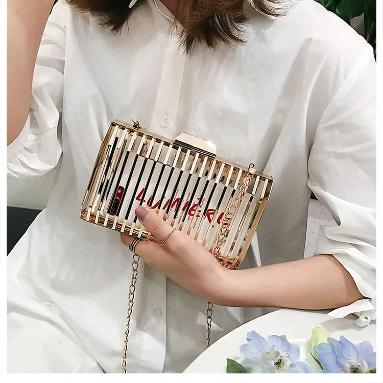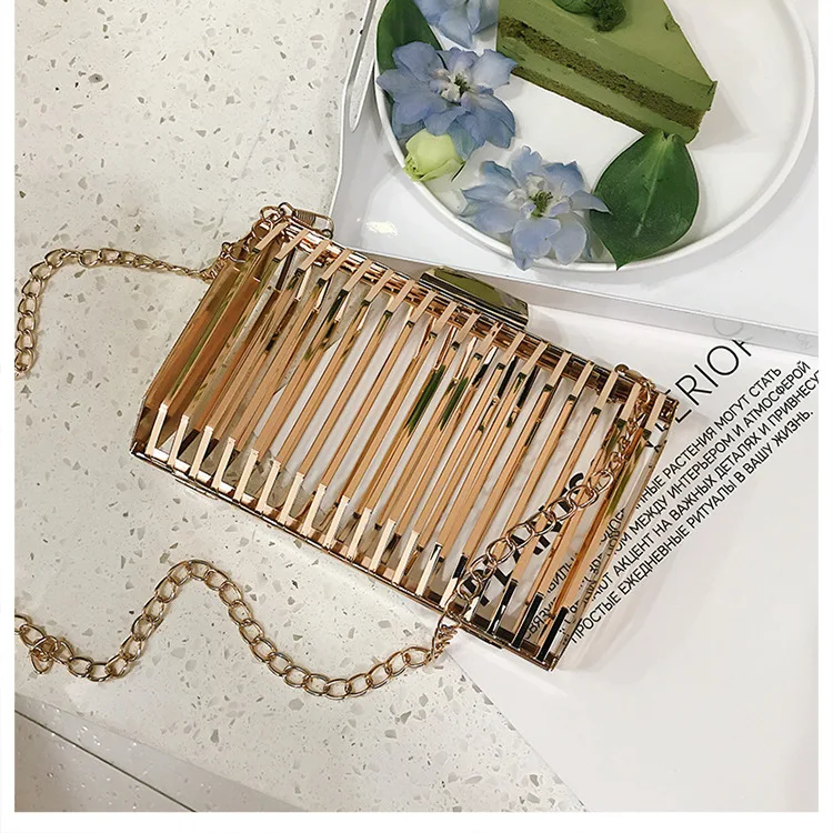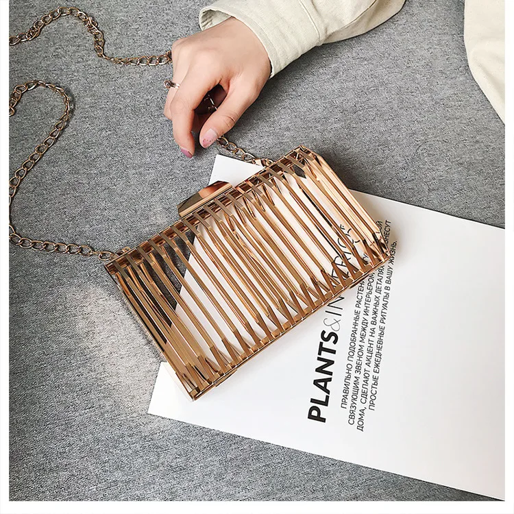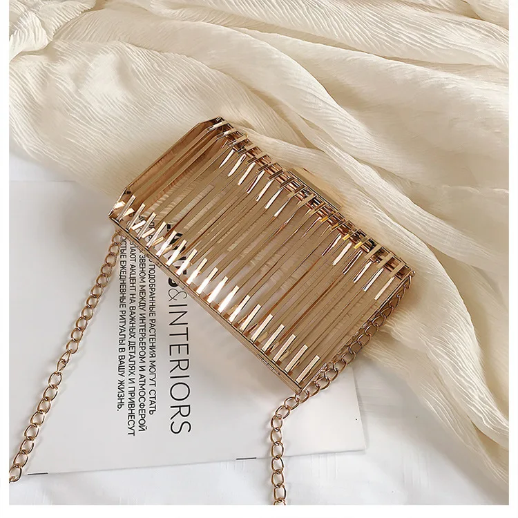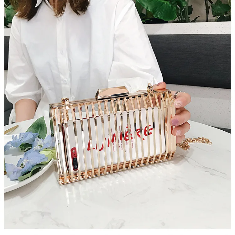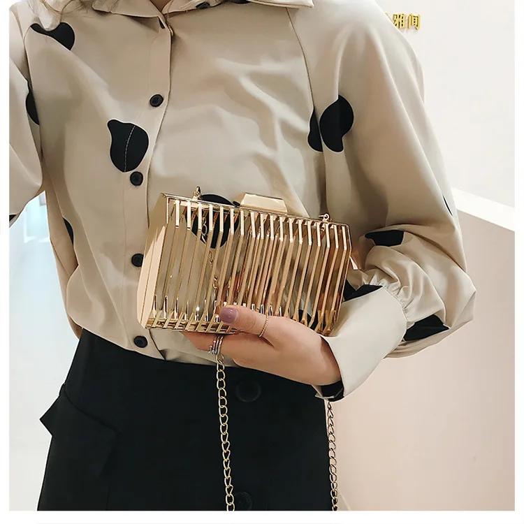 Женская вечерняя сумка-клатч с металлической полой цепочкой, вечерние сумки-мессенджеры через плечо, уникальный дизайн