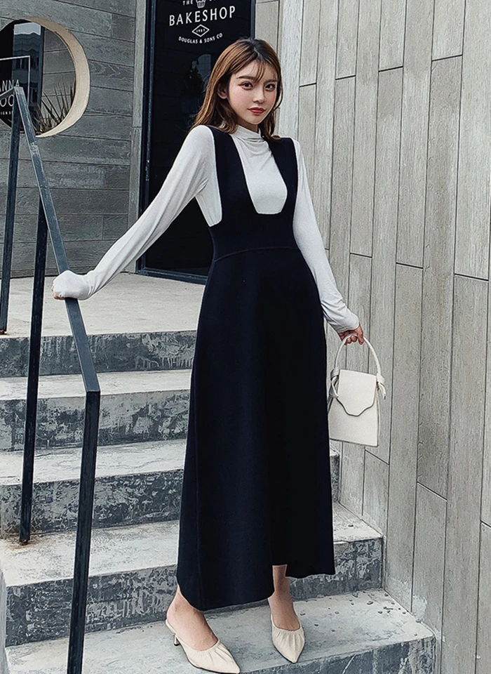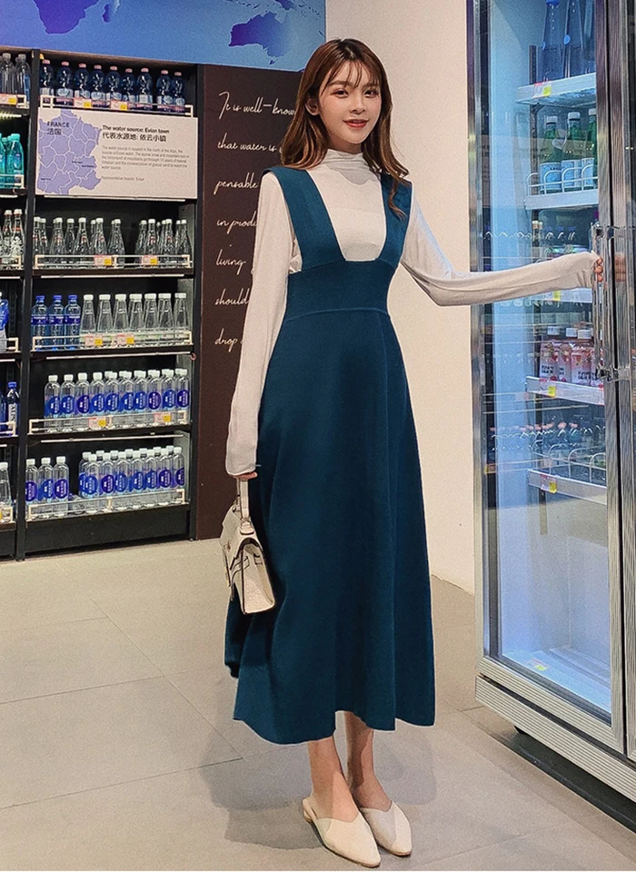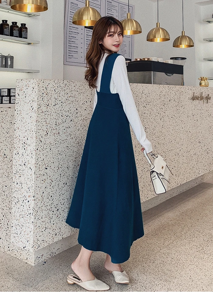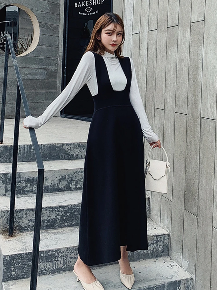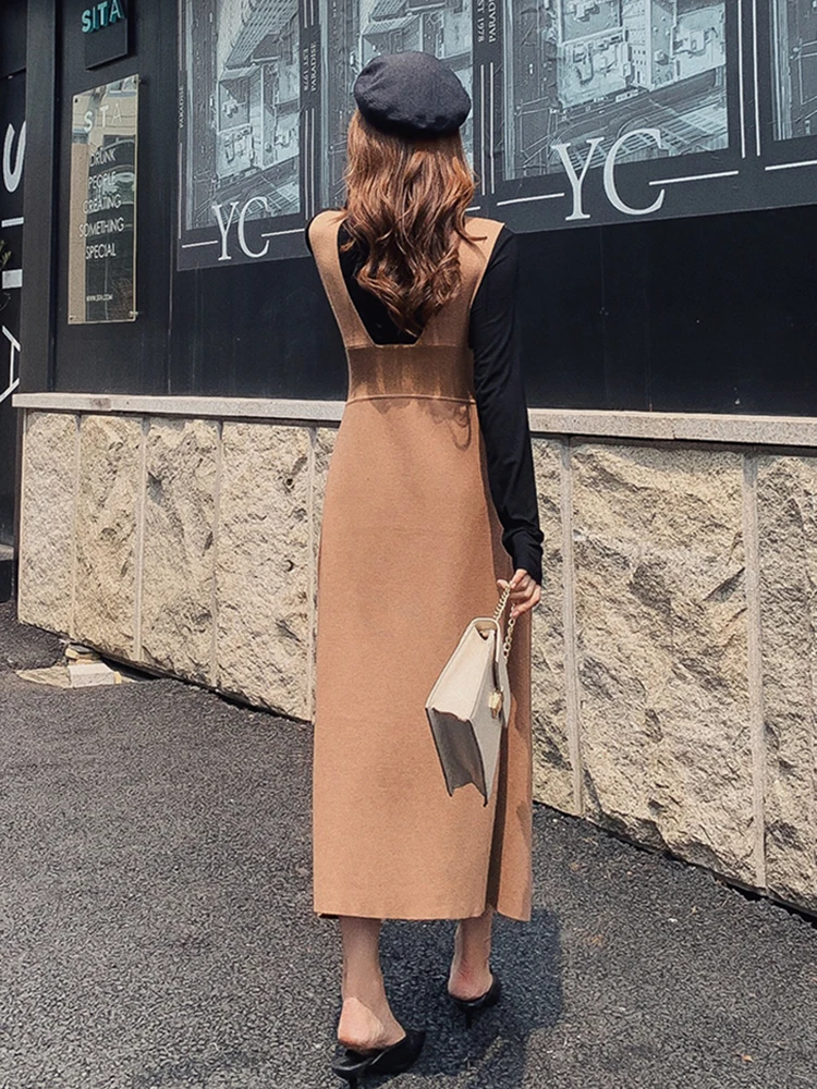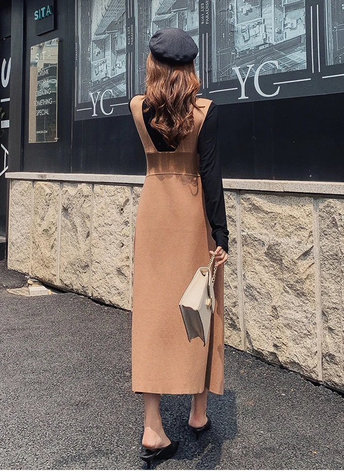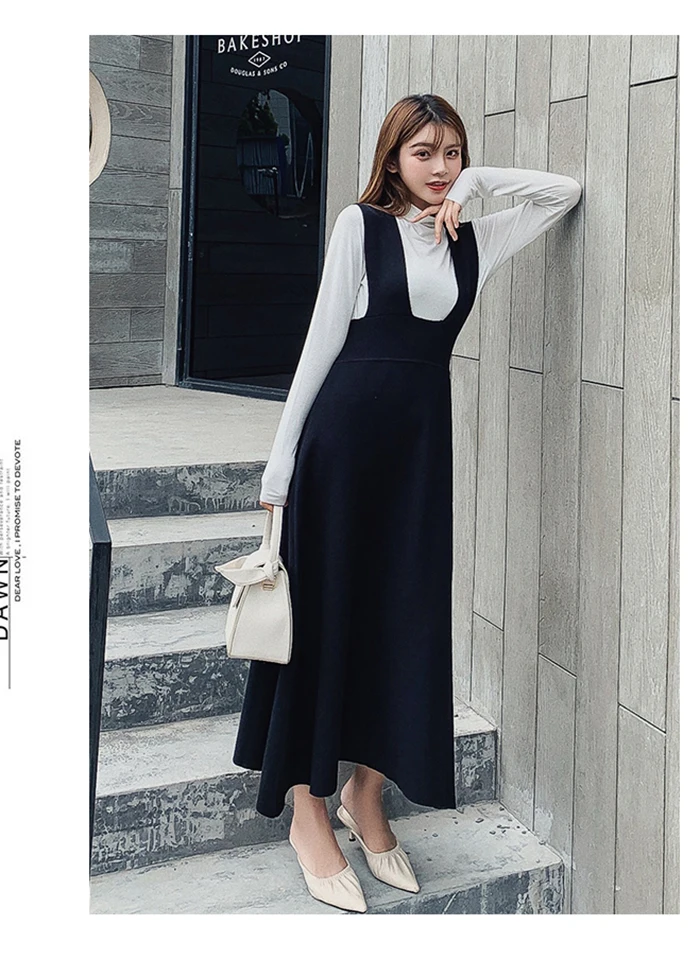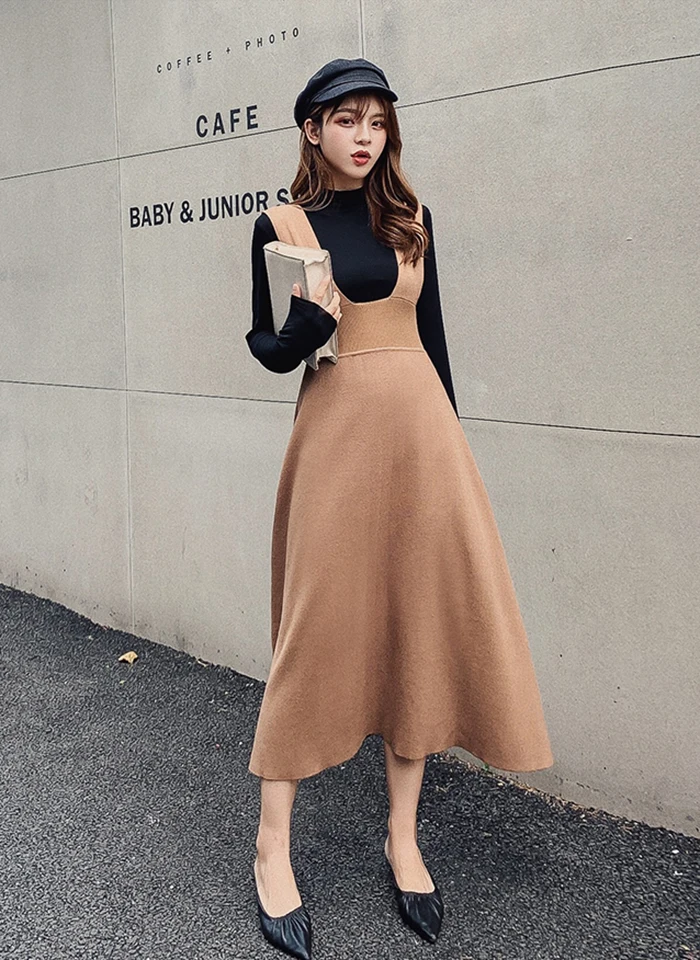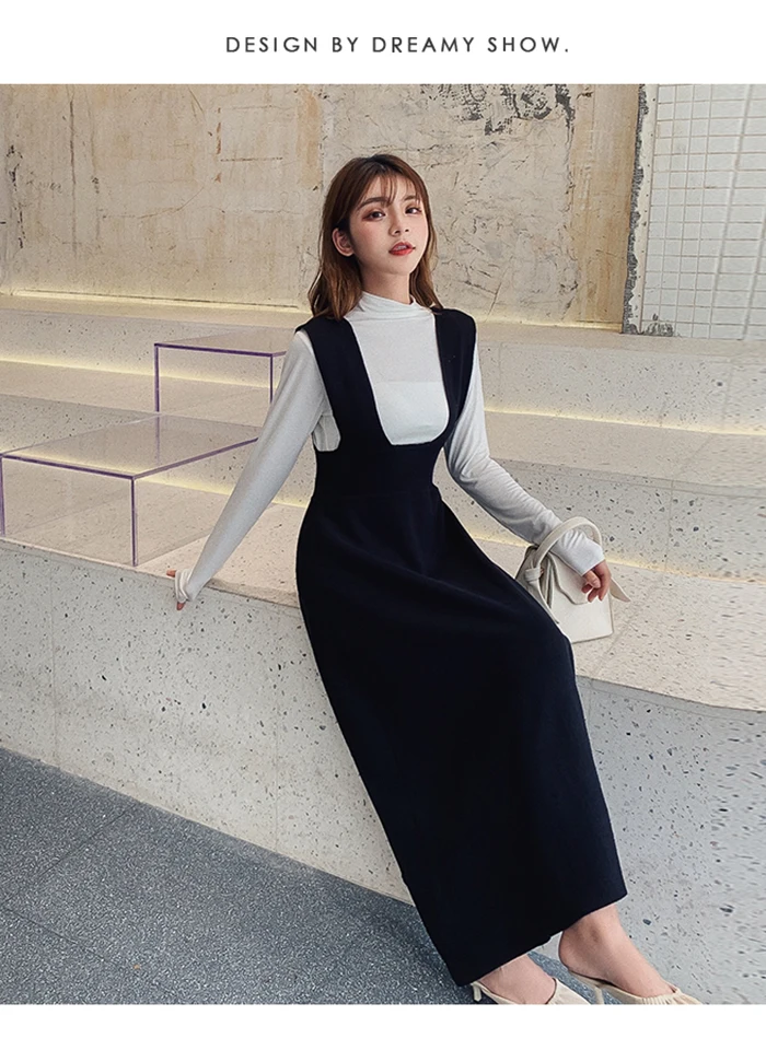 Юбка-свитер женская трикотажная длинная на бретелях, с высокой талией, на осеньзиму, 2021