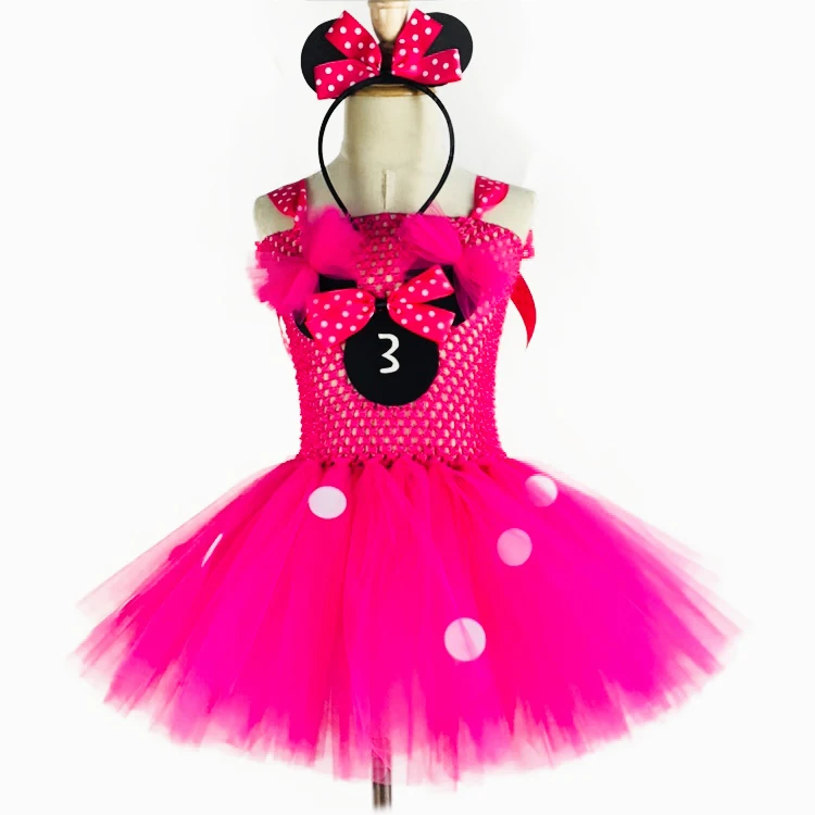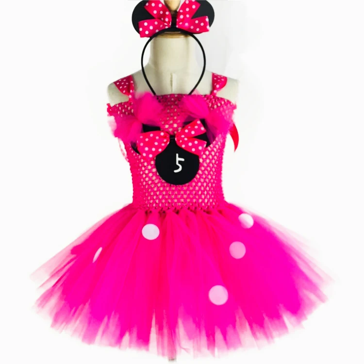 Милое розовое платье-пачка для девочек с Микки Маусом, детское вязаное платье с белыми точками и бантом для волос, Детский костюм на день рождения, косплей, платье-пачка icon star icon star icon star icon star icon star
