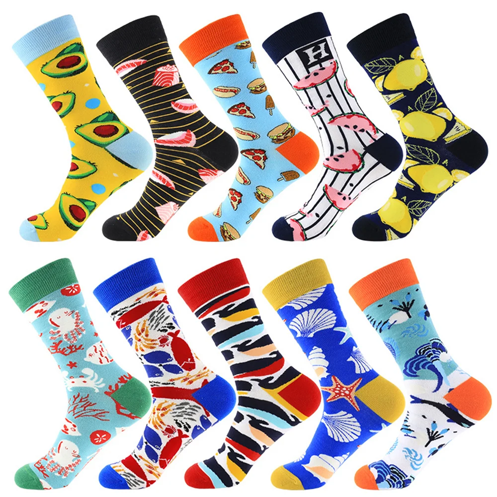 Модные носки Harajuku, зима счастливые мужские носки, забавные, из чесаного хлопка, повседневные, свадебные, в стиле хип-хоп, трендовые, для скейтборда, носки для рождественских подарков