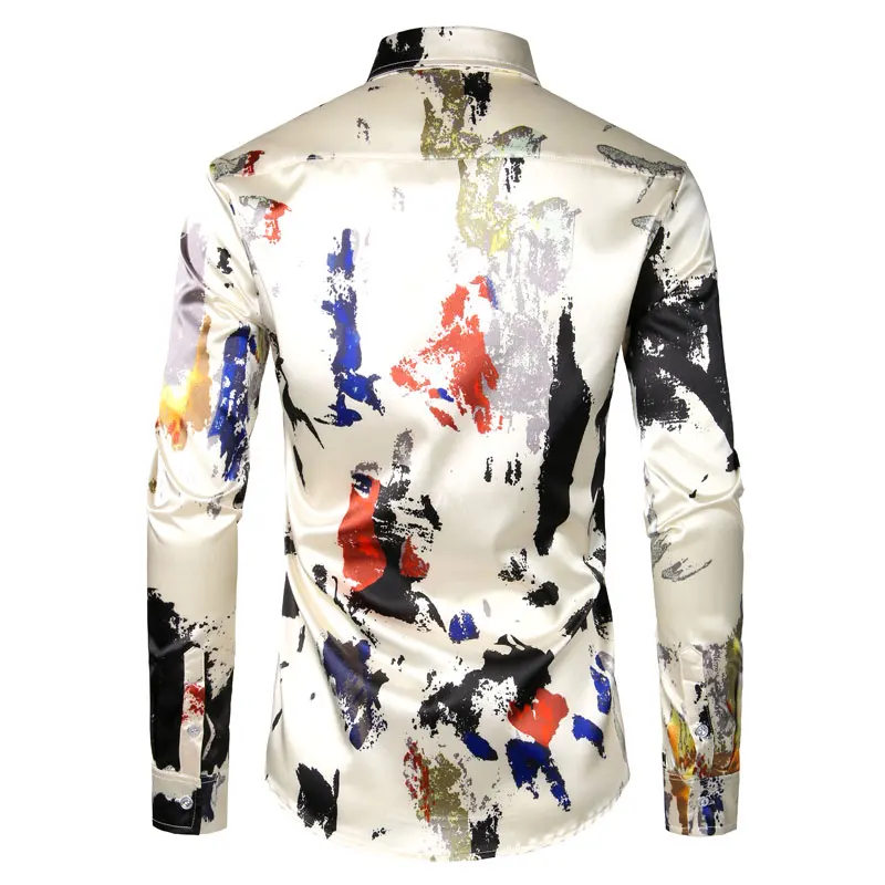 Мужская шелковая рубашка с длинным рукавом, с принтом