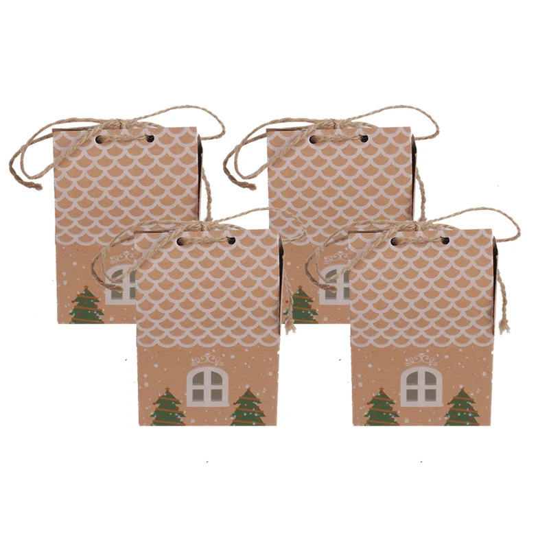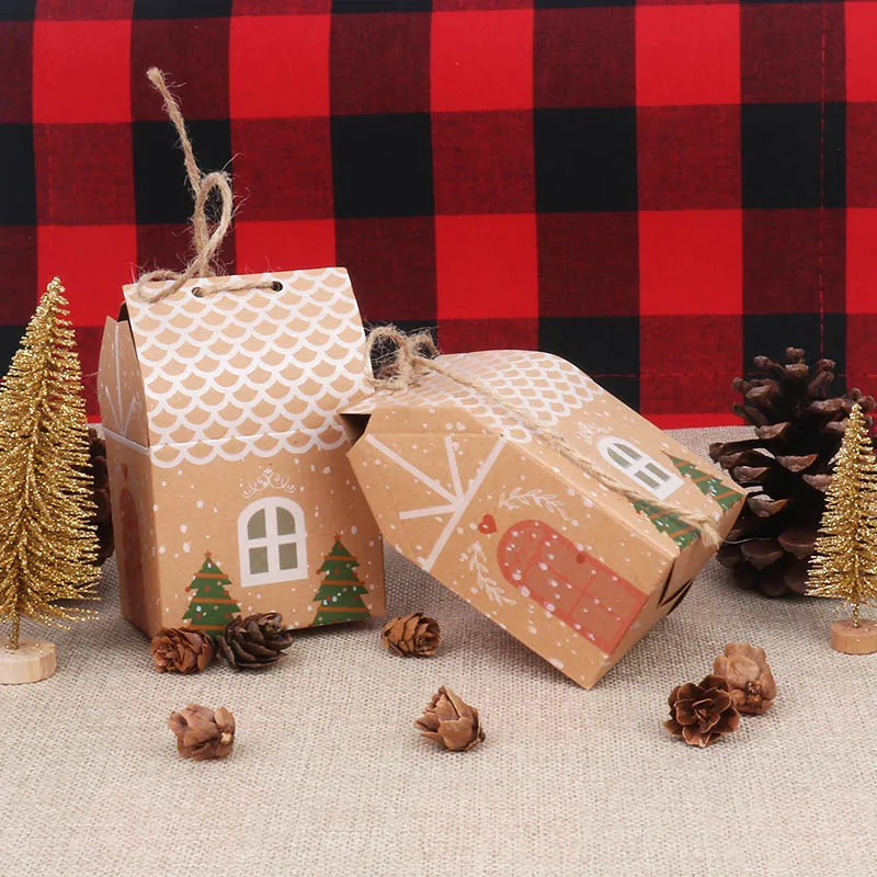 Рождественские подарочные коробки из крафтовой бумаги, в форме доми...