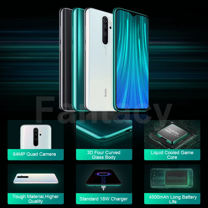 Xiaomi Redmi Note 8 Pro с глобальной прошивкой, 8 ГБ ОЗУ, 128 Гб ПЗУ, мобильный телефон, 64 мп, четыре камеры MTK Helio G90T, смартфон, 4500 мАч, 18 Вт, QC 3,0