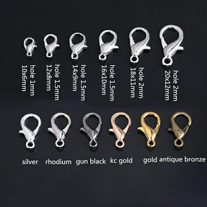 20 штук 1012141621 ММ золотого, серебряного, черного цвета застежками Браслет Крючки концевые соединители для изготовления ювелирных изделий DIY ожерелье с пряжкой