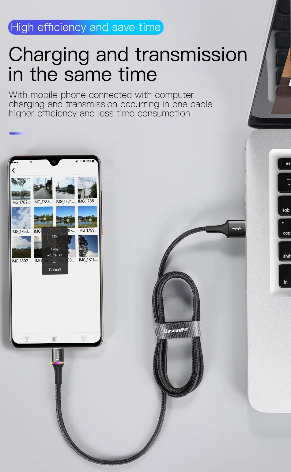 Кабель для быстрой зарядки, прочный и имеет красивый светодиод, меняющий цвет.