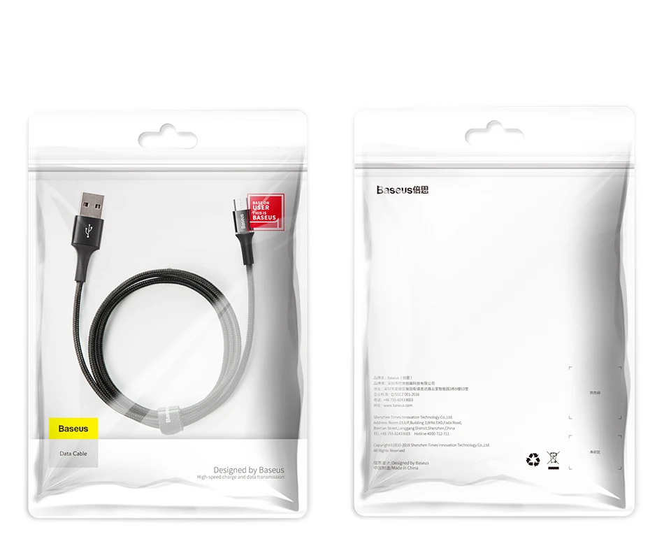 Micro USB кабель Baseus, 2А3А, 0.250.5123м, красныйчёрный