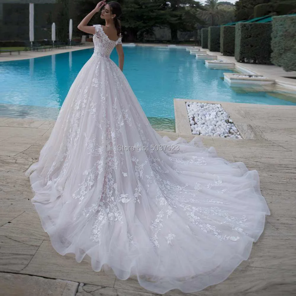 Светильник-розовое бальное платье Свадебные платья Vestido De Noiva с открытыми плечами и V-образным вырезом кружевные свадебные платья с аппликацией Свадебные платья со шлейфом