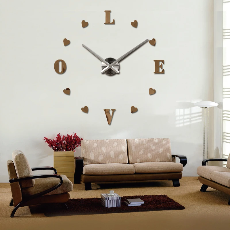 Новые акриловые зеркальные настенные часы 3d из натурального металла сделай сам, часы, часы, украшение для дома, современные игольчатые кварцевые наклейки с надписью love