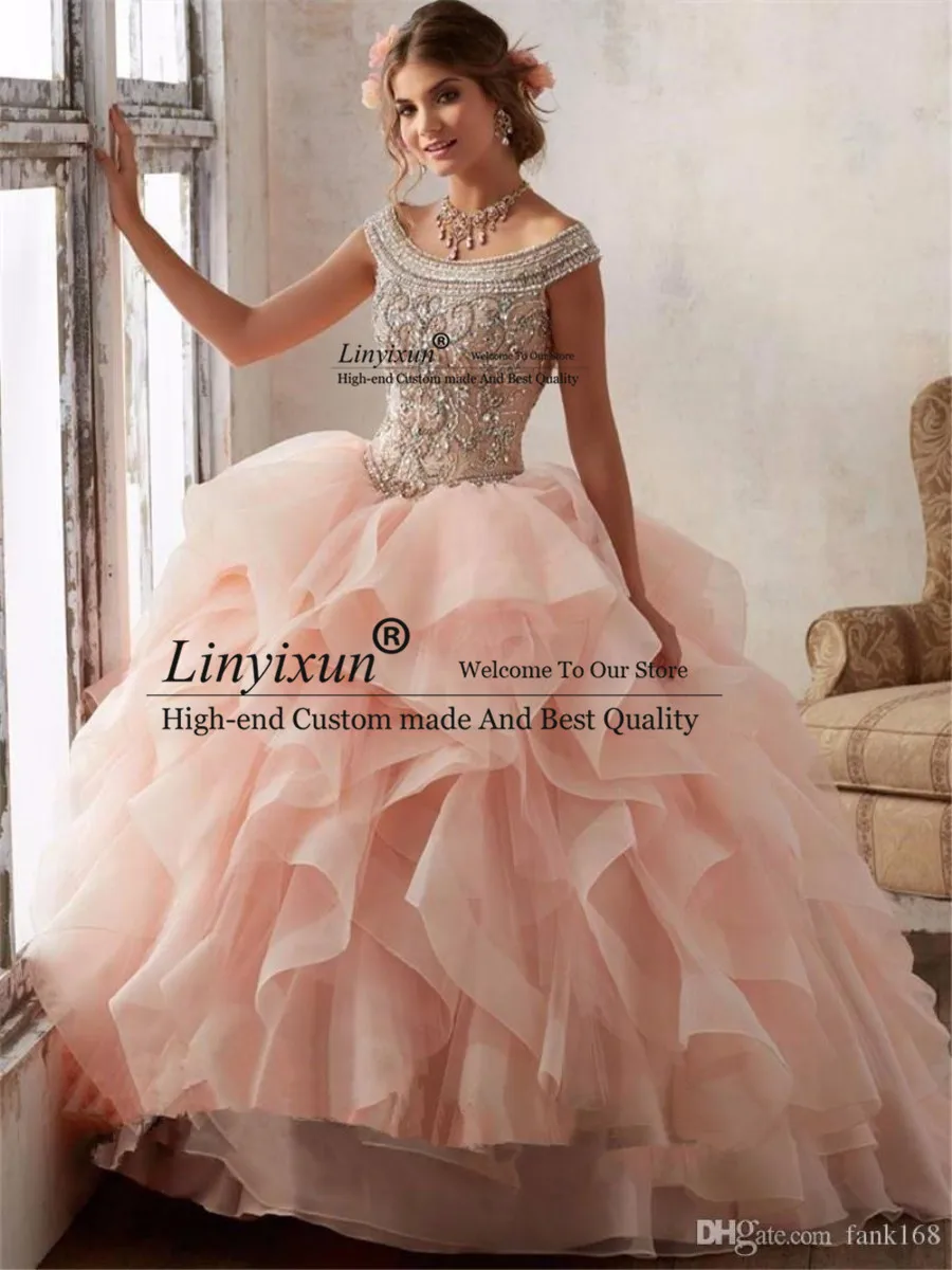 Шикарные платья Quinceanera 2019 с круглым вырезом, шикарные платья с бисером и блестками для отладки, 15 лет