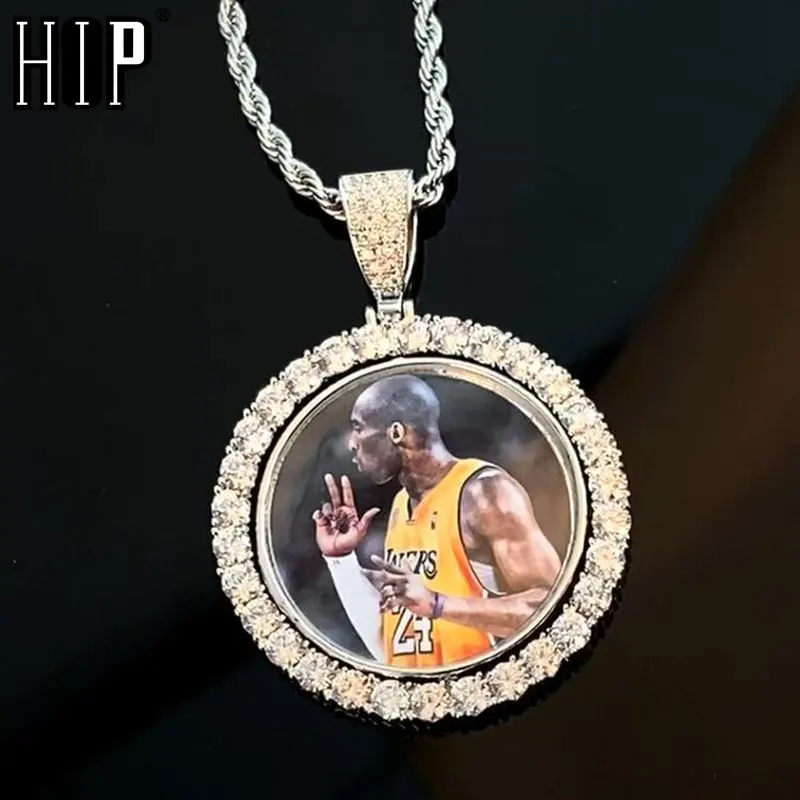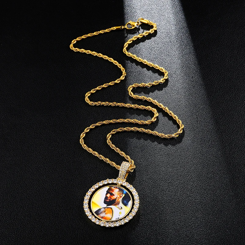 Хип-хоп круглое вращающееся двустороннее кольцо со льдом на заказ фото кубический циркон ожерелье и кулон для мужчин ювелирные изделия теннисная цепь