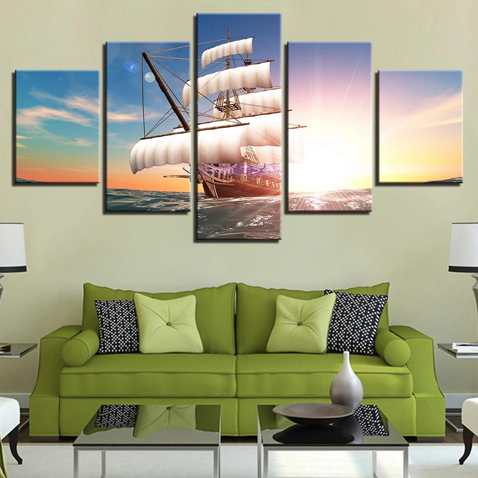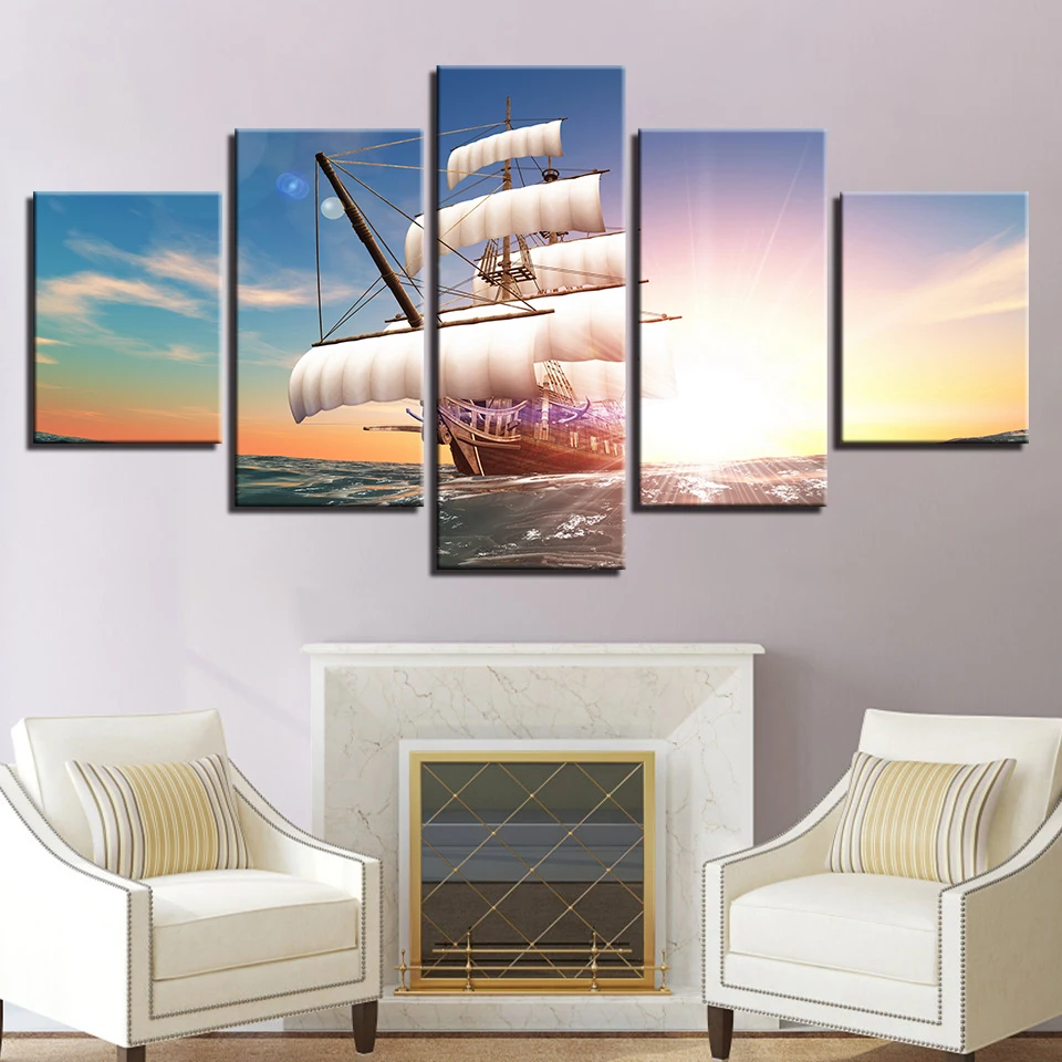 HD живопись на холсте 5 шт. Voyage паруса корабля морской ветер плакат печать рисунка для Гостиная отделки стен