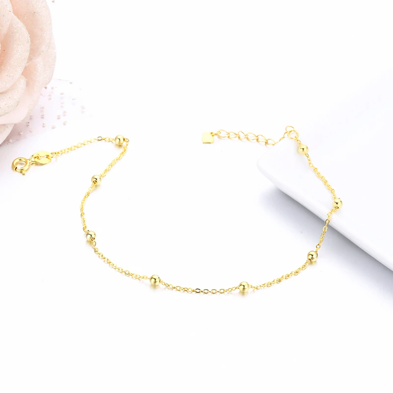 Браслет на ногу женский из серебра 925 пробы, с бусинами
