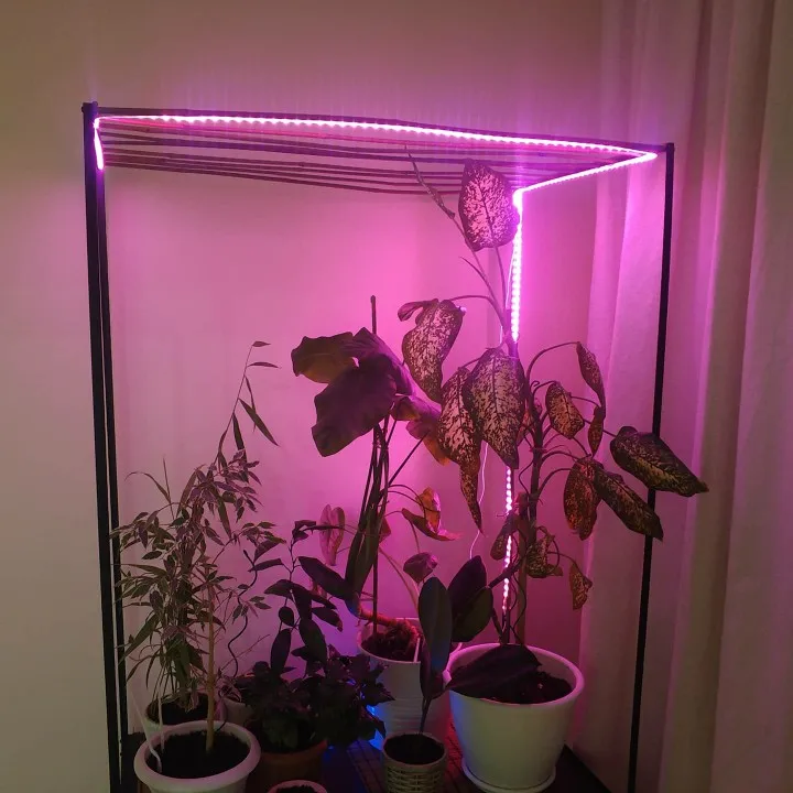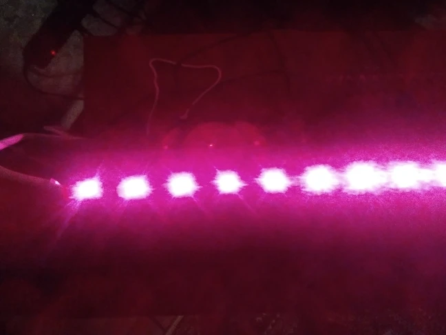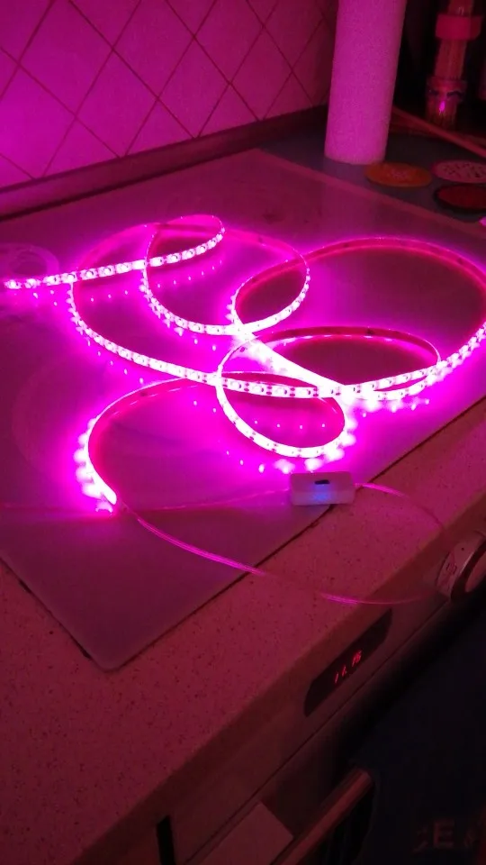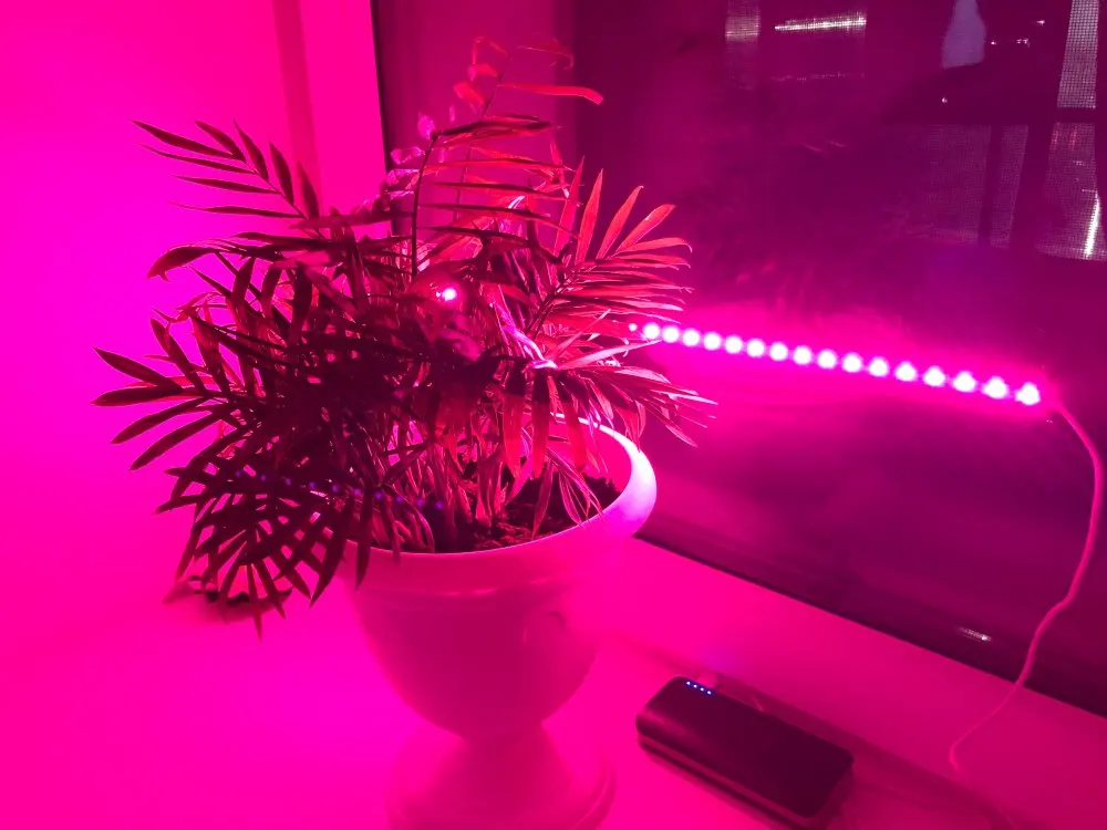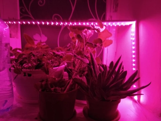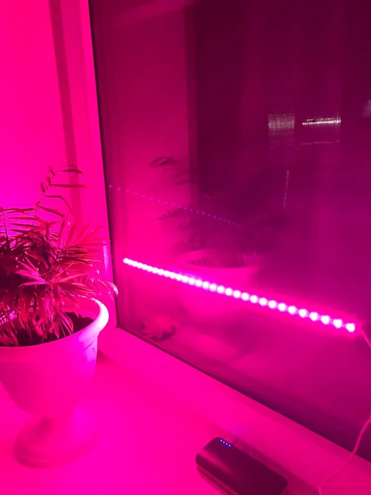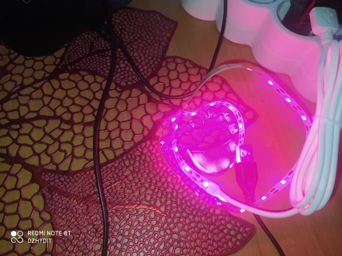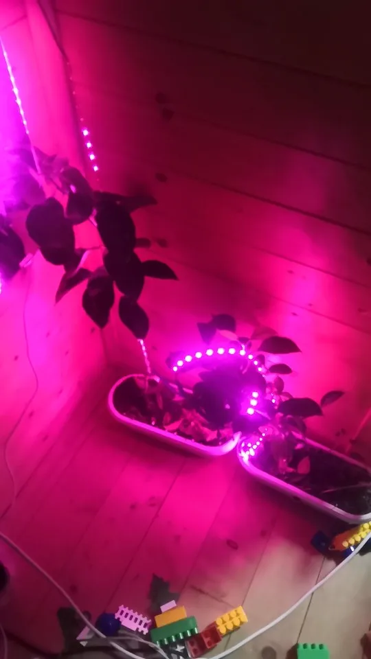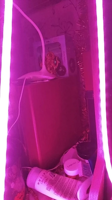 ленточка очень тоненькая, но работает, свет красно-розовый и достаточно яркий, крепится на самоклейка на какое-нибудь приспособление, будем испытывать эффект для растений