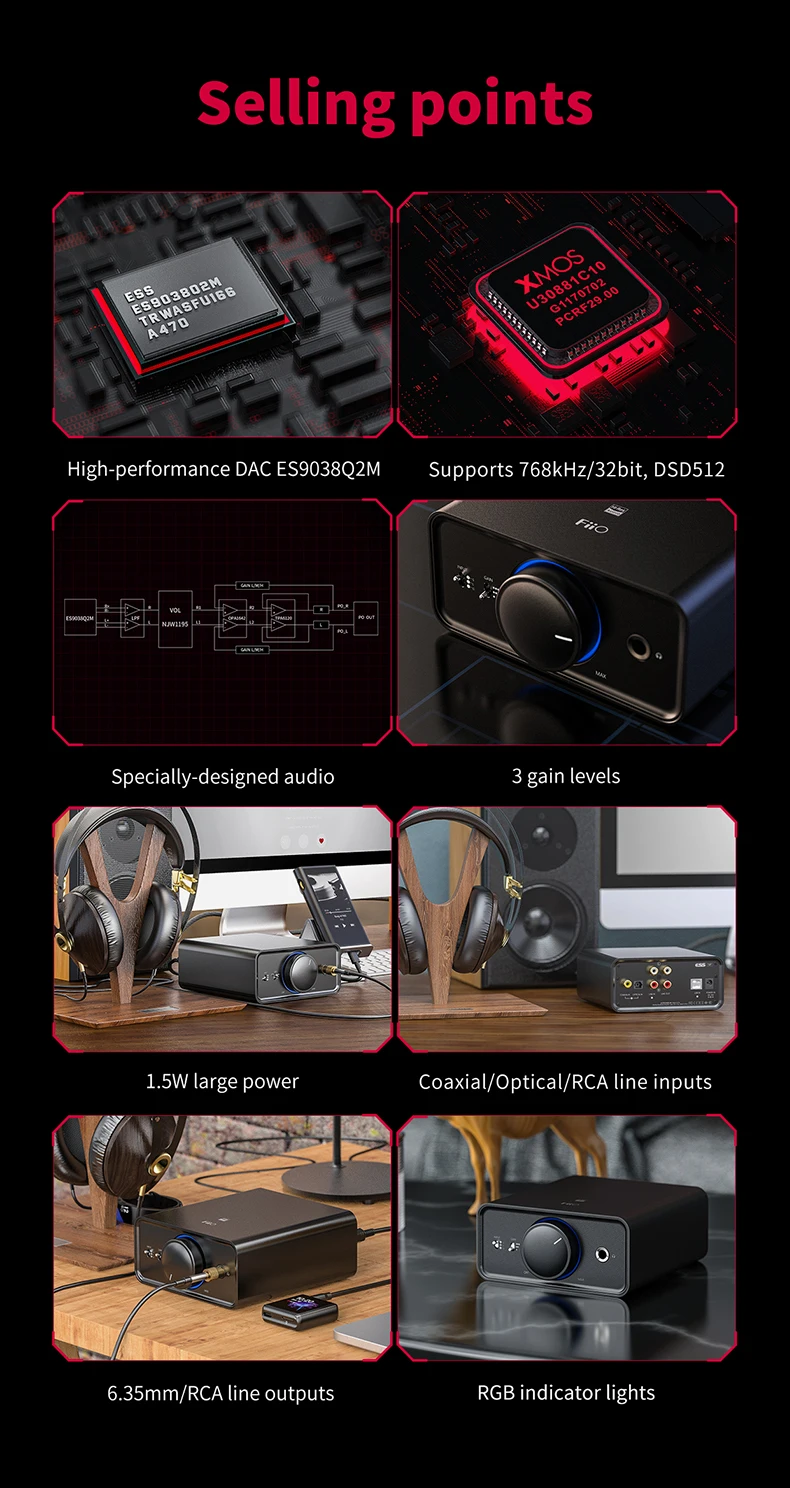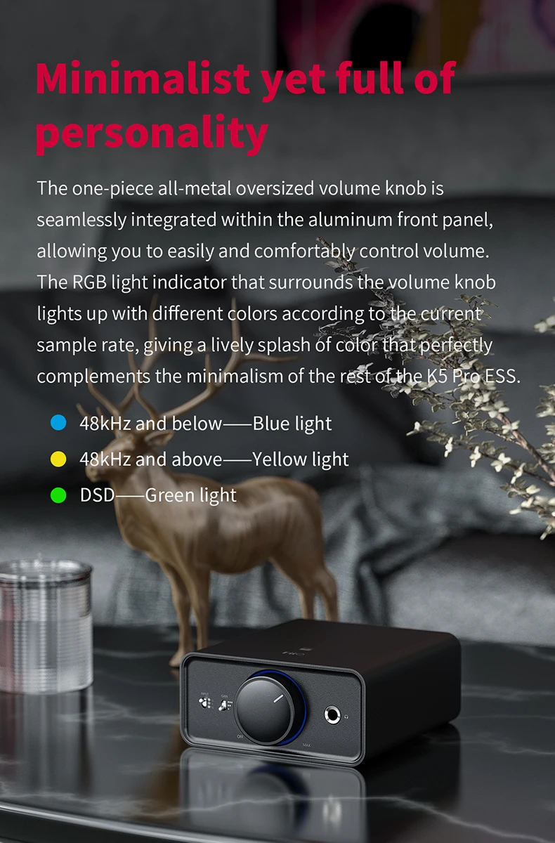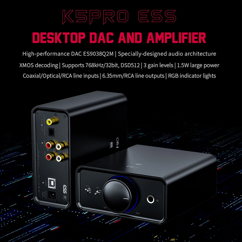 Настольный ЦАП-усилитель для наушников FiiO K5 Pro ESS с чипом ES9038Q2M, декодирование XMOS, PCM 768k DSD512, 1,5 Вт, большая мощность, 3 уровня усиления