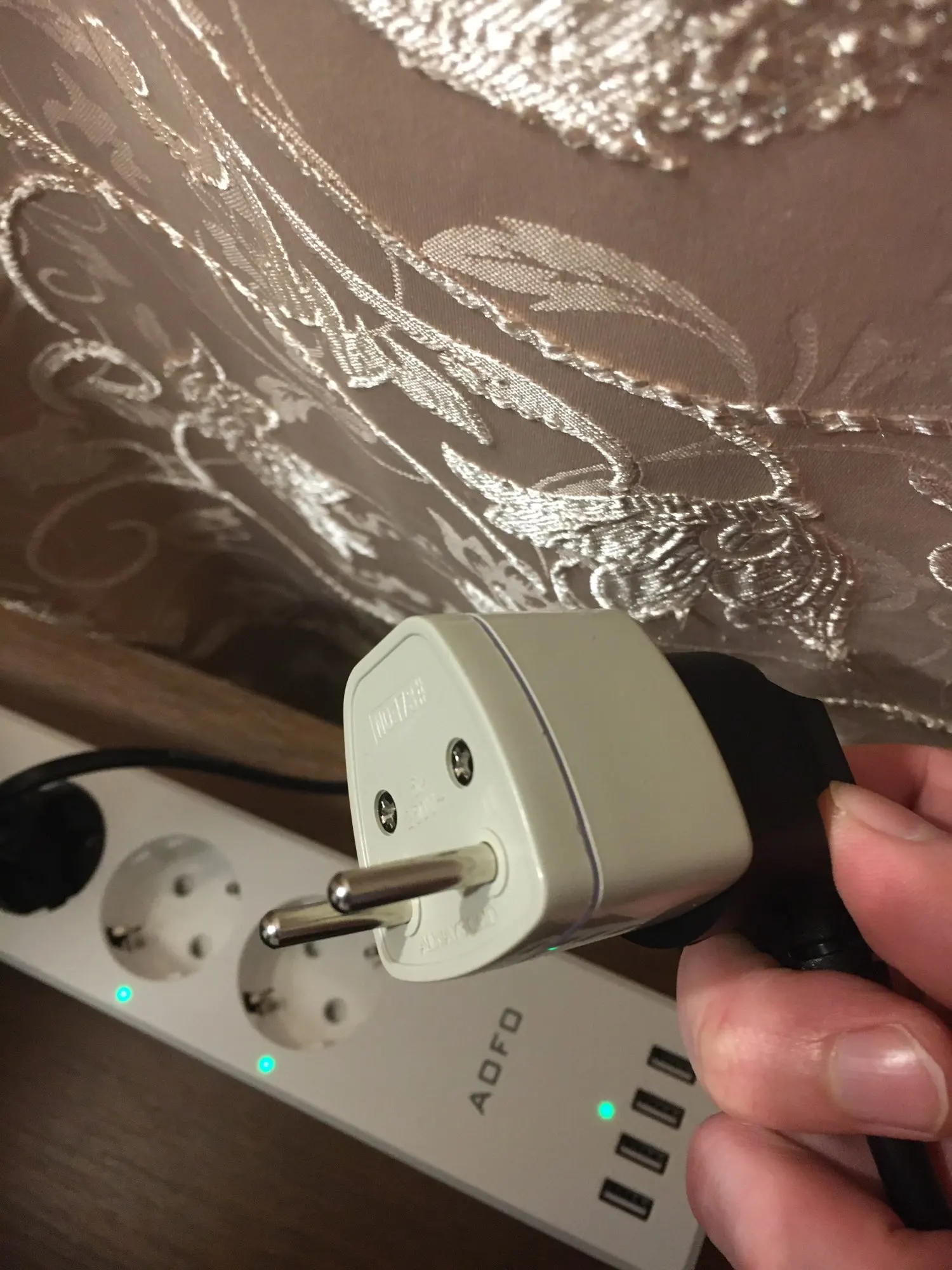 Переходник на евровилку продавец так и не положил :) Хотя - он все равно никому не подходил - квадратный - не лезет в наши розетки.