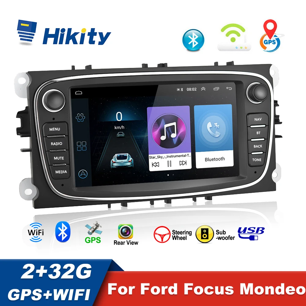 Hikity Android CANBUS GPS Wifi AI Voice 2 Din мультимедийный видео плеер для Ford Focus Mondeo C-MAX S-MAX Galaxy II Kuga
