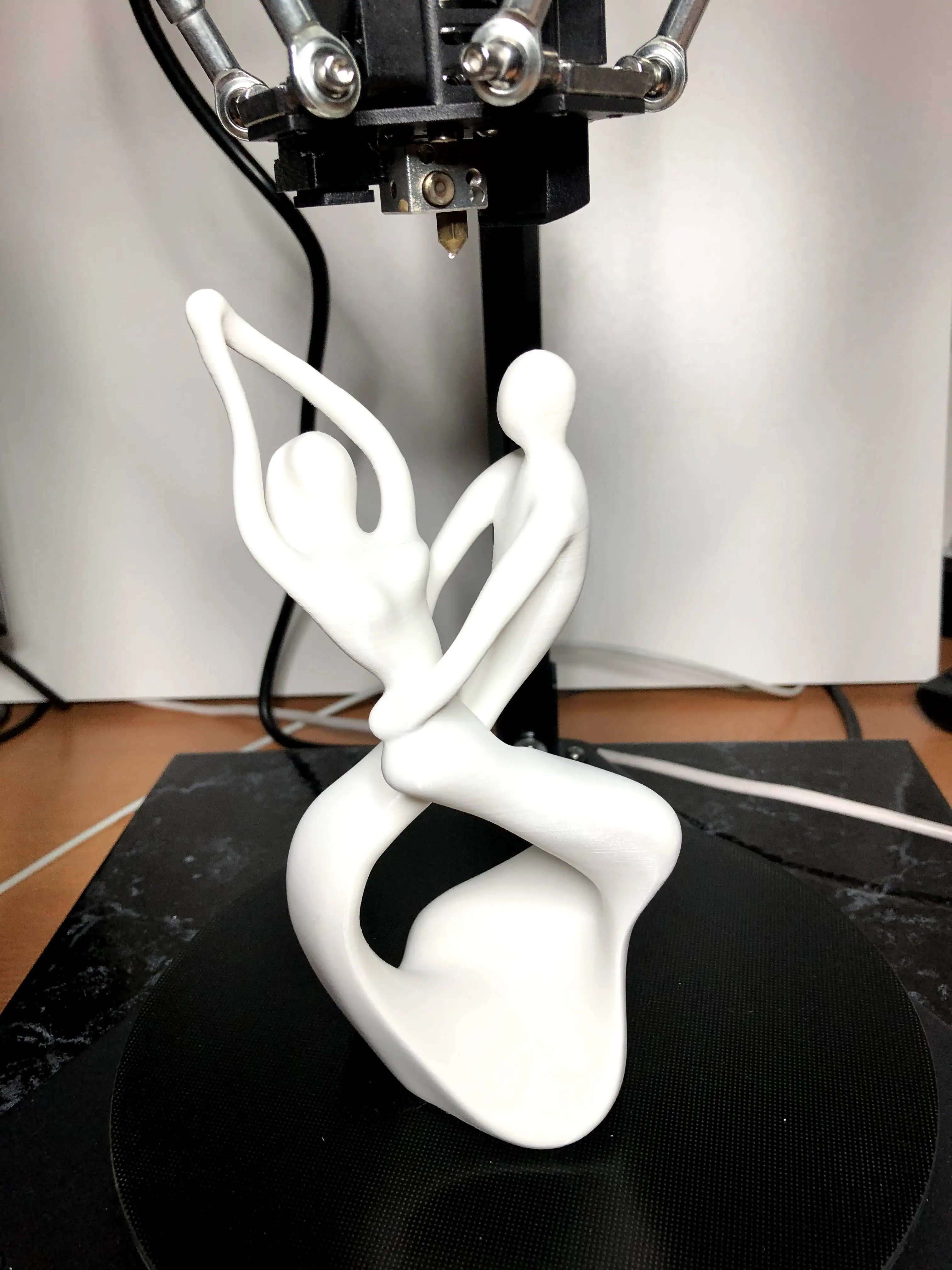 Принтер очень порадовал (это мой первый) печатает хорошо, сборка очень простая. Достаточно высокая прочность конструкции, каретки ходят непосредственно по профилю при печати нет люфтов (в отличии от круглых направляющих). Покрытие стола очень хорошее, пластик прилипает очень сильно и на горячую можно принтер поднять за деталь (но лучше так не делать), а после остывания достаточно легко отходит если подцепить край подложки, иногда сама отходит. В слайсере cura отсутствует данная модель принтера, поэтому был выбран QQ и изменен размер стола, это все настройки которые выполнялись, поэтому на фото пример печати из коробки. Дефекты на фото более заметны чем в живую (Даже удивило, то на фото есть какие-то дефекты, часть из них проблемы самой модели, например наплывы на втулке в середине, там неправильный стык, как видно выше стенки очень ровные, при правильных настройках печати будет все хорошо). Продавец отзывчевый, была проблема с флешкой, продавец выслал архив отдельно.