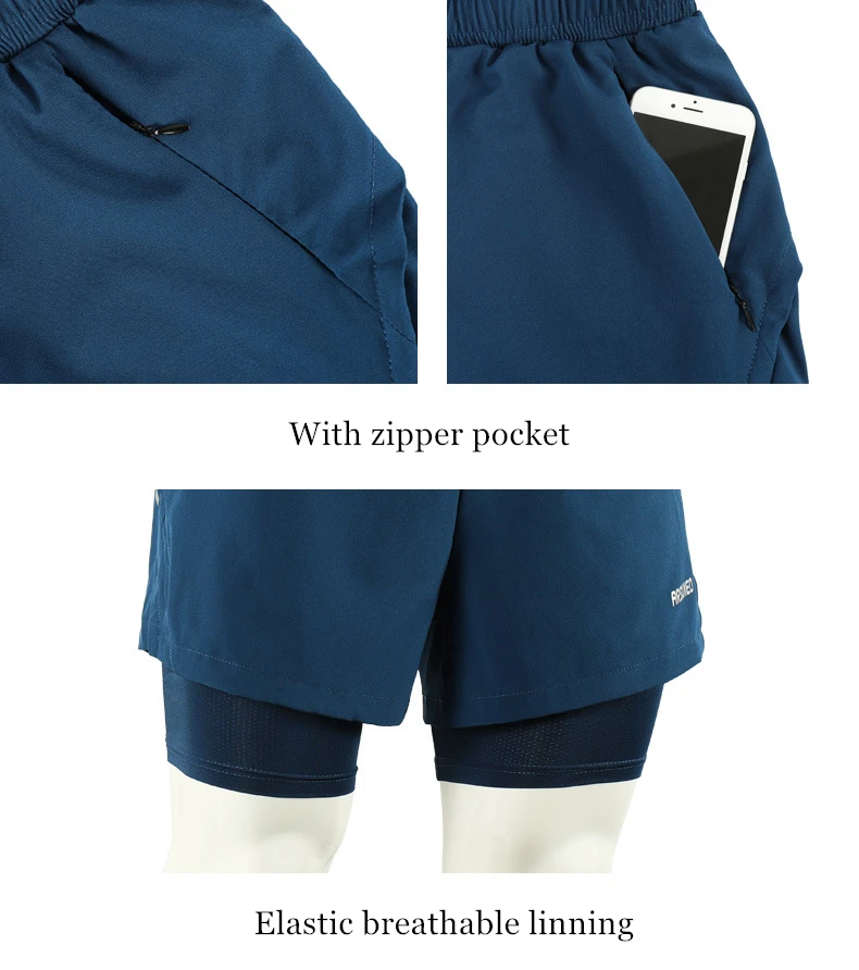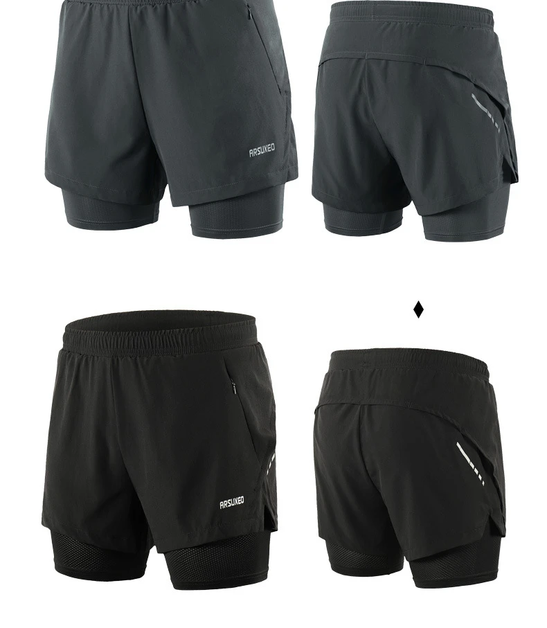 Светоотражающие шорты для бега ARSUXEO, Мужские дышащие шорты 2 в 1 для спортзала, фитнеса, тренировок, бега, с подкладкой, карманами на молнии