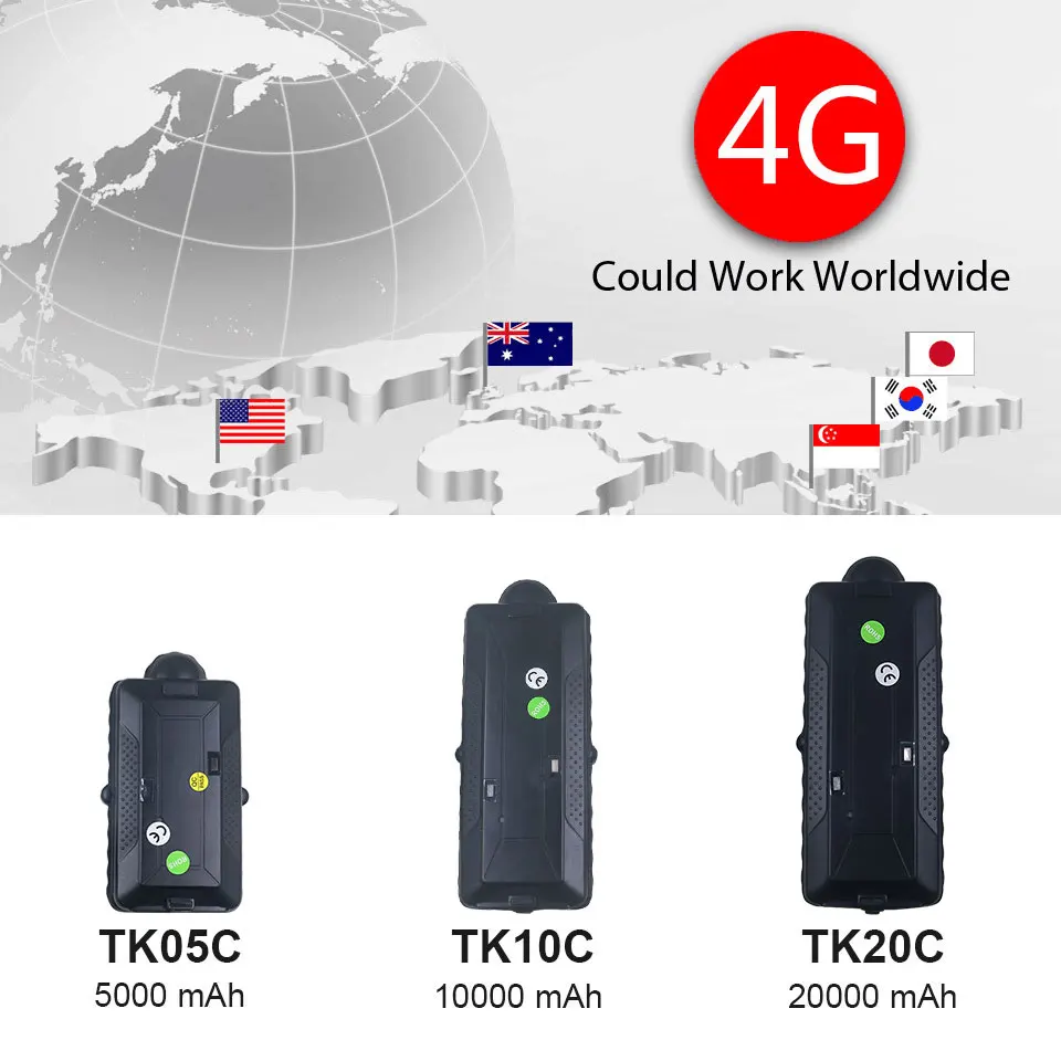 GPS-трекер TK20C, 4G LTE, водонепроницаемый, с большим аккумулятором, TK05C, TK10C