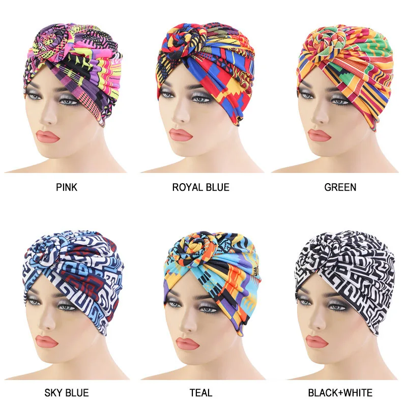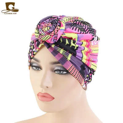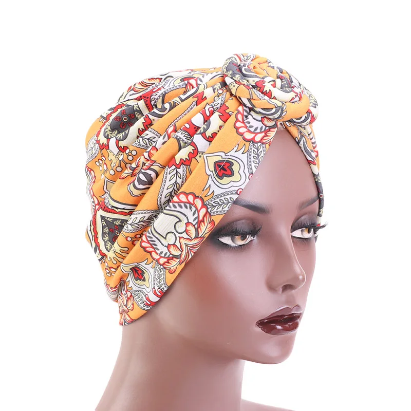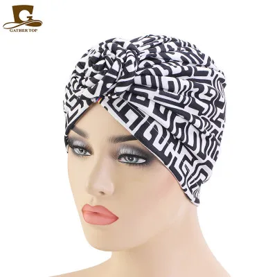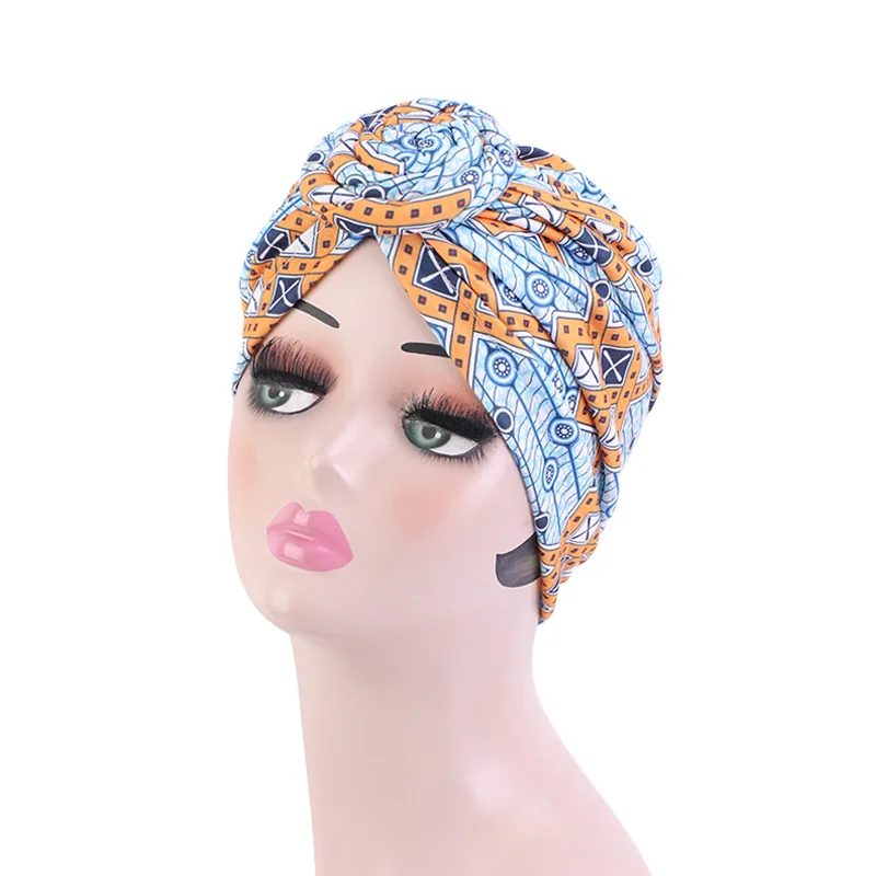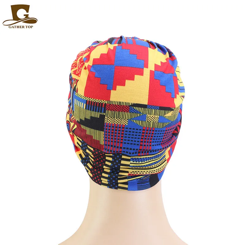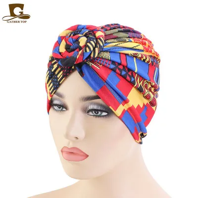 Новинка, Женский Африканский узор, рандомный мусульманский тюрбан с узлом, индийская шляпа, кепка для женщин, банданы, аксессуары для волос
