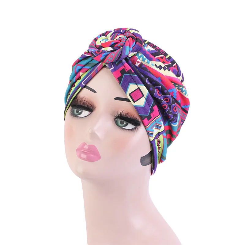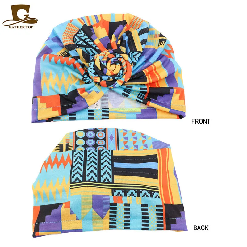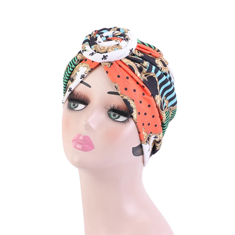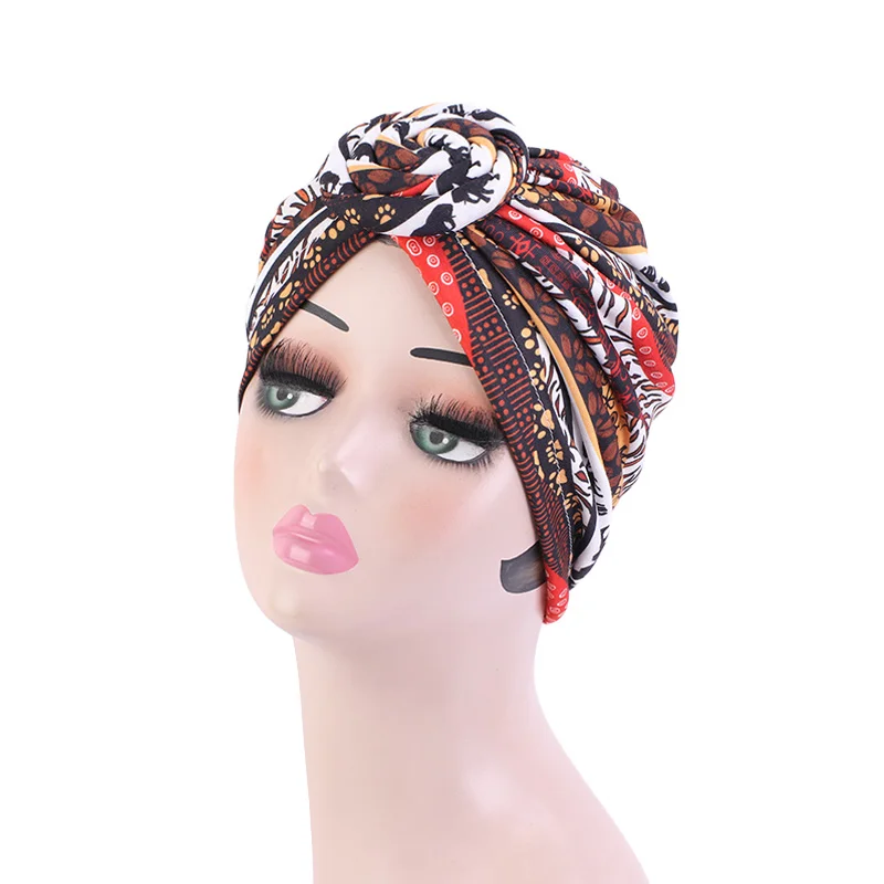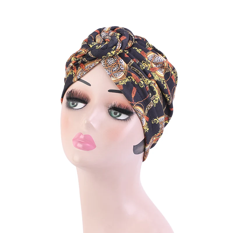 Новинка, Женский Африканский узор, рандомный мусульманский тюрбан с узлом, индийская шляпа, кепка для женщин, банданы, аксессуары для волос