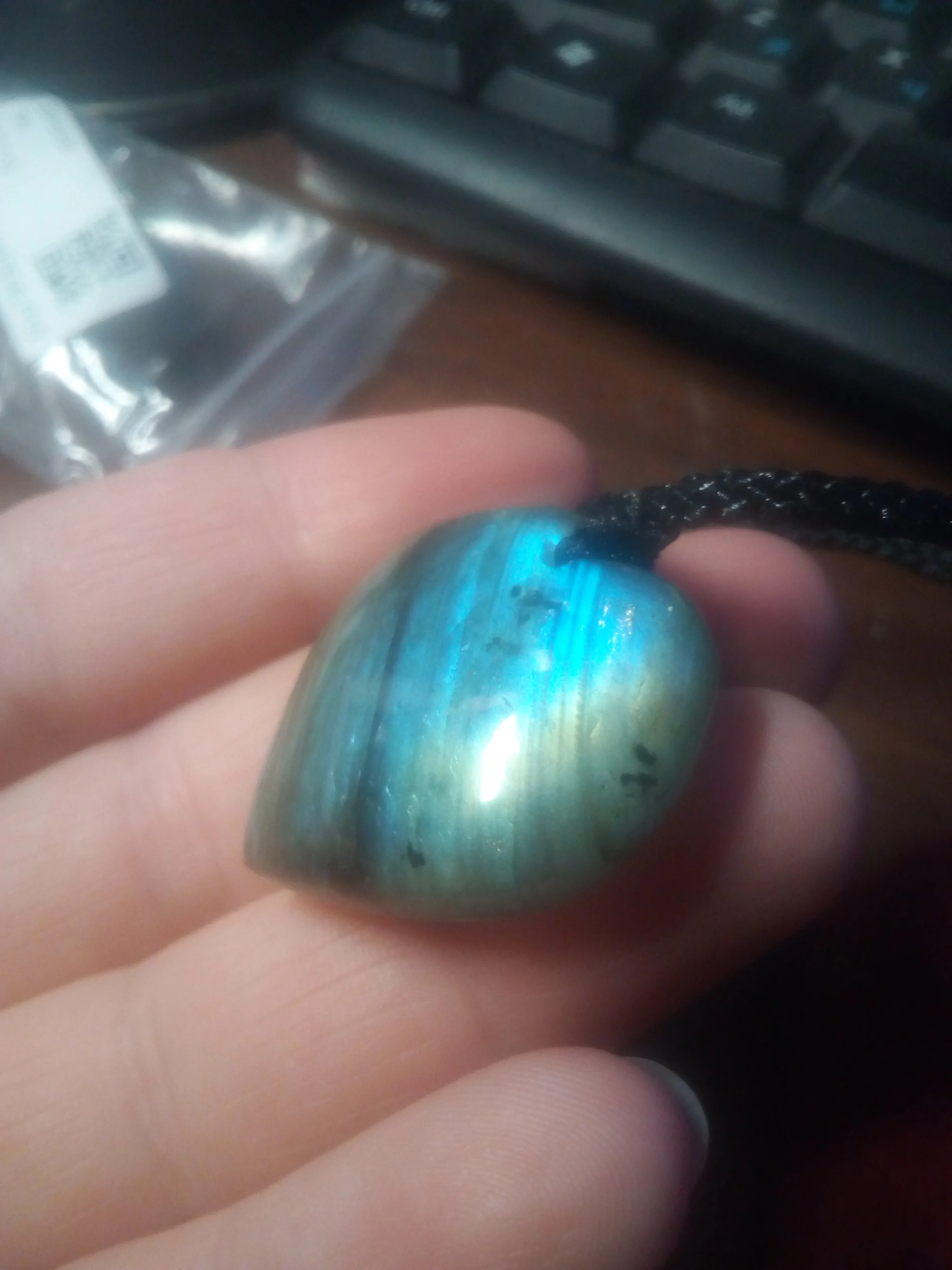 Кулончик не плохой . Конечно такой иризации как на картинке нет ,это как лотерея ,но все таки немного светится .