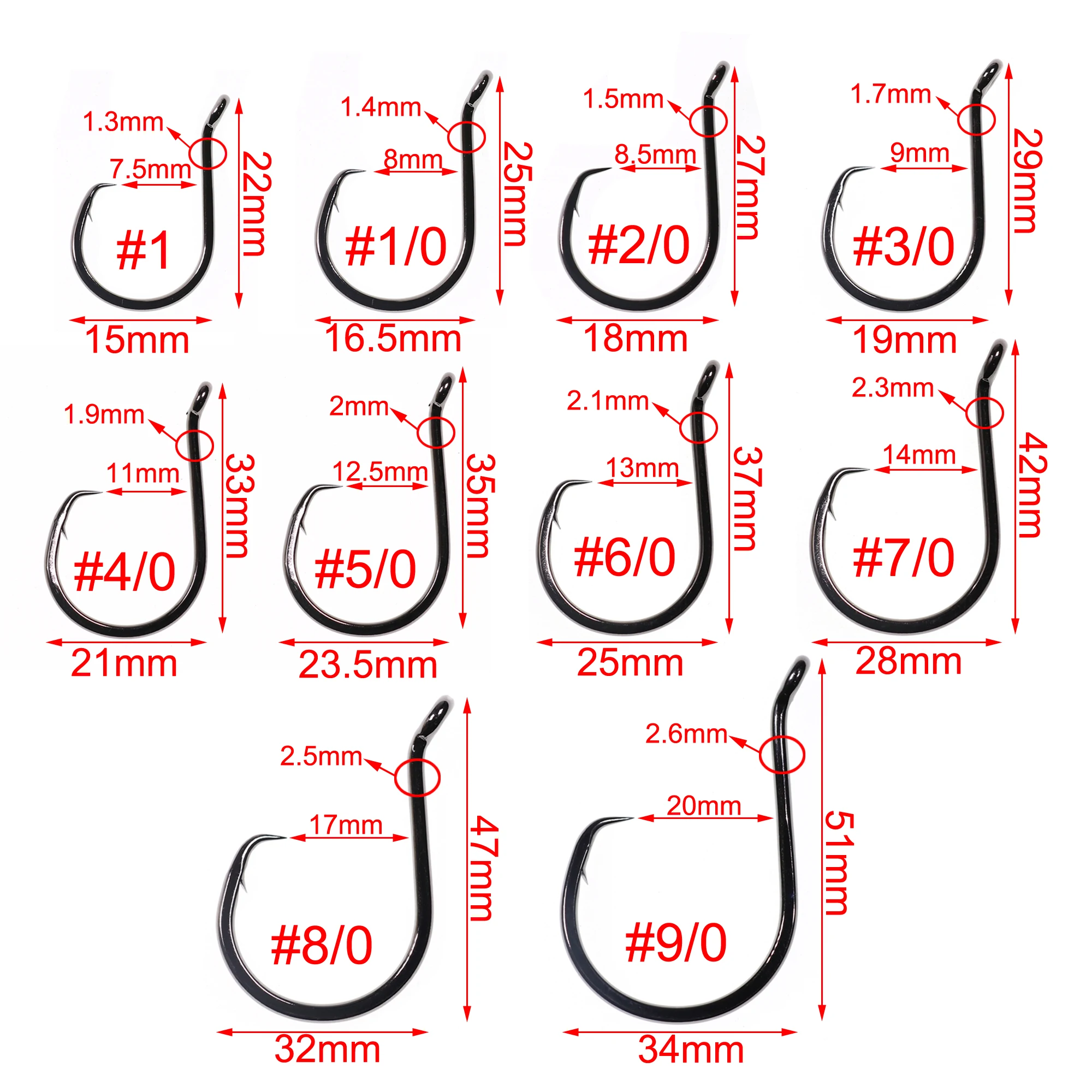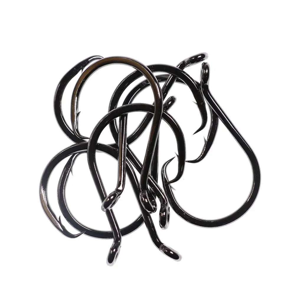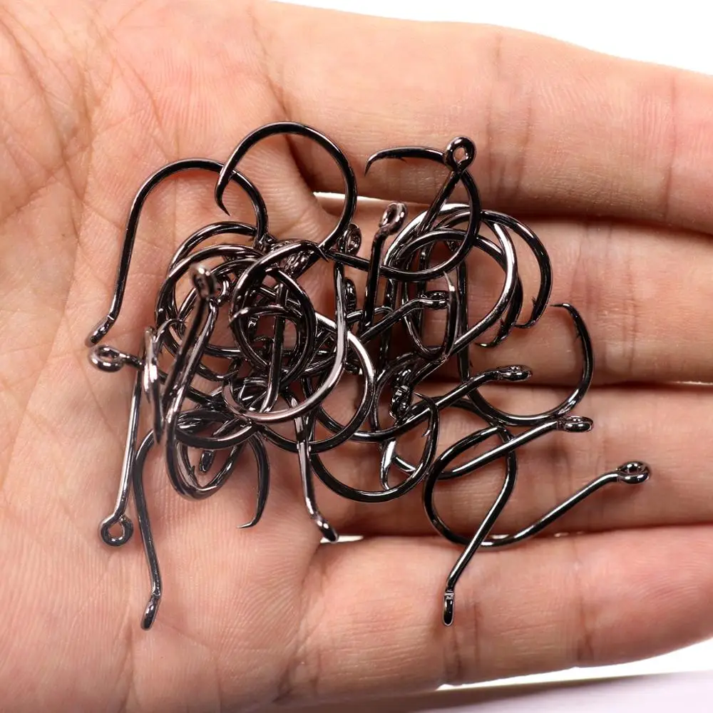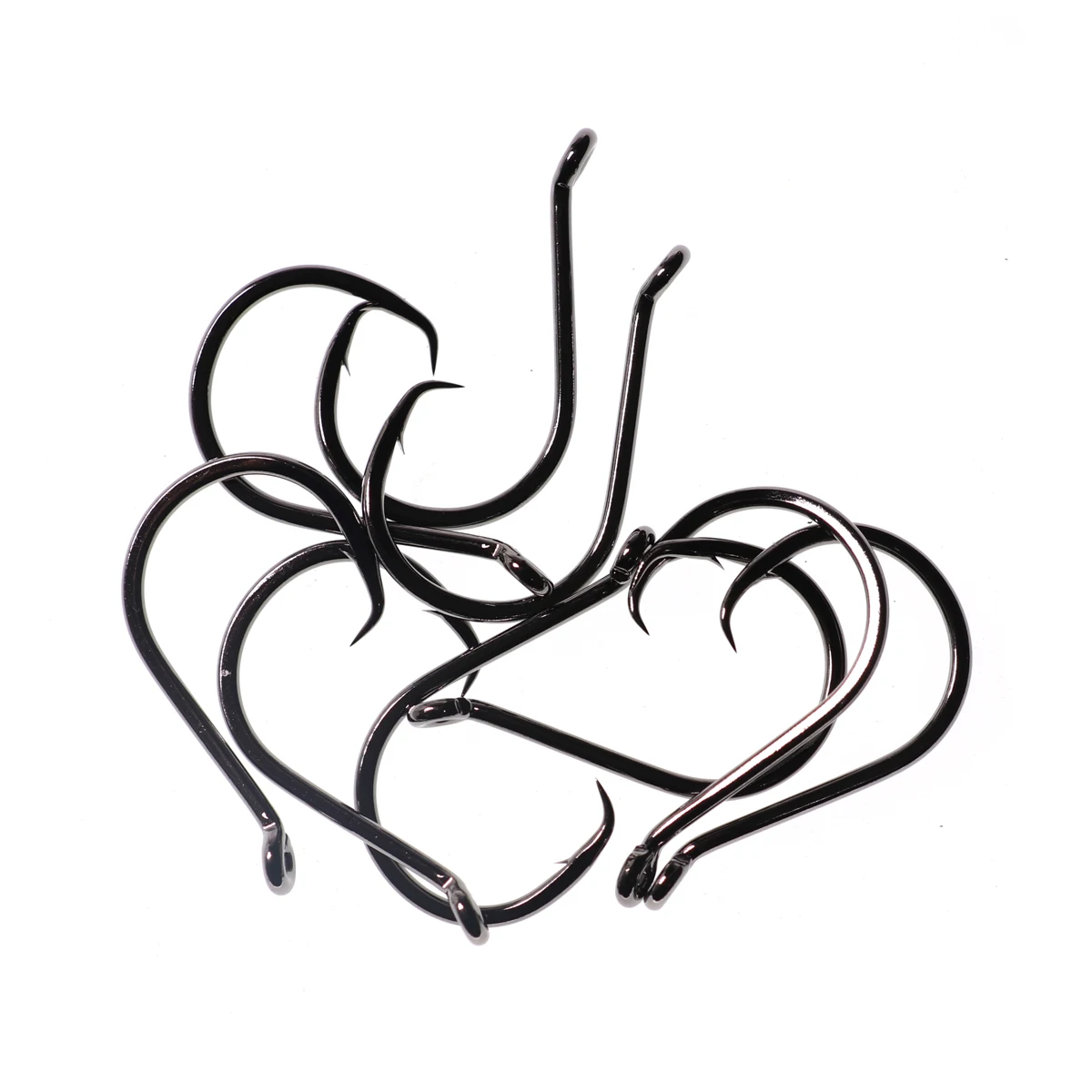 100 шт пресноводные рыболовные крючки черные никелевые колючие круглые Крючки из высокоуглеродистой стали рыболовные крючки для рыбы, тунца 10 размеров