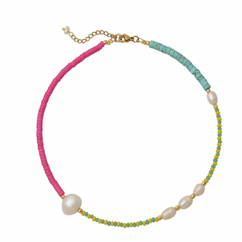 Короткое ожерелье из мягкой глины в богемном стиле, розовая Милая ц...