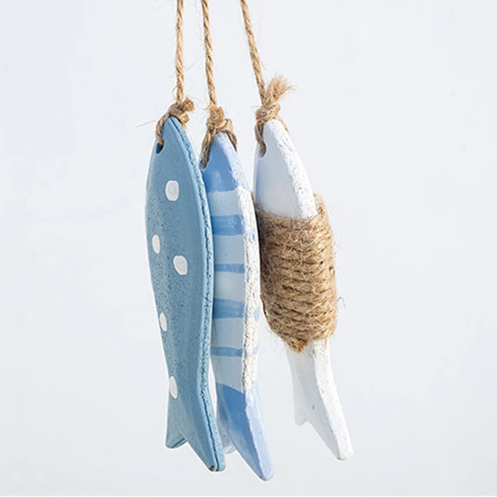 Маленькая искусственная деревянная подвеска в виде рыбы для украшения детского сада (в горошек и трех элементов)
