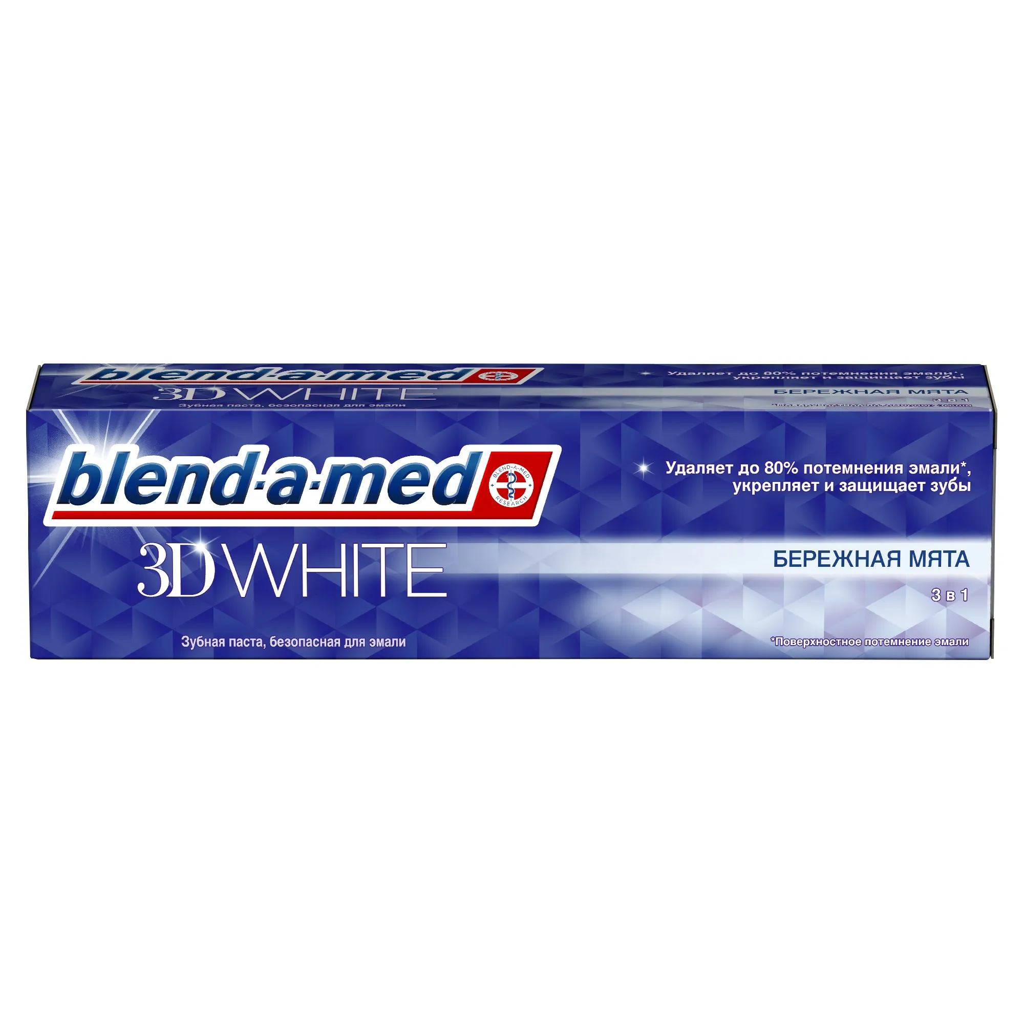 Зубная паста деликатно обеспечивает эффект трехмерного отбеливания, за счет отбеливающих частиц, которые во время чистки проникают в труднодоступные места. Зубная паста Blend-a-med 3D White бережет эмаль зубов.