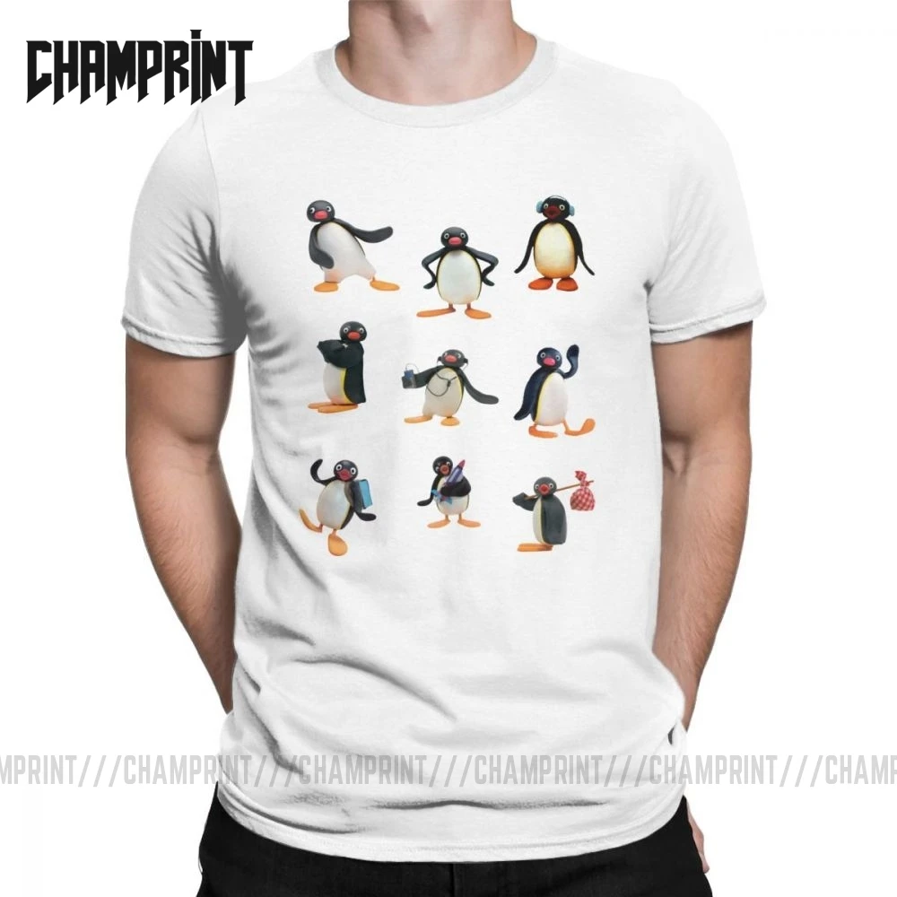 Pingu настроение футболки для мужчин 100% хлопковая Футболка с рисунком пингвина из мультфильма мем дети 80s 90s ретро милые футболки для девочек с короткими рукавами, одежда размера плюс