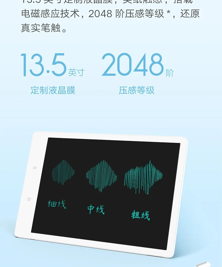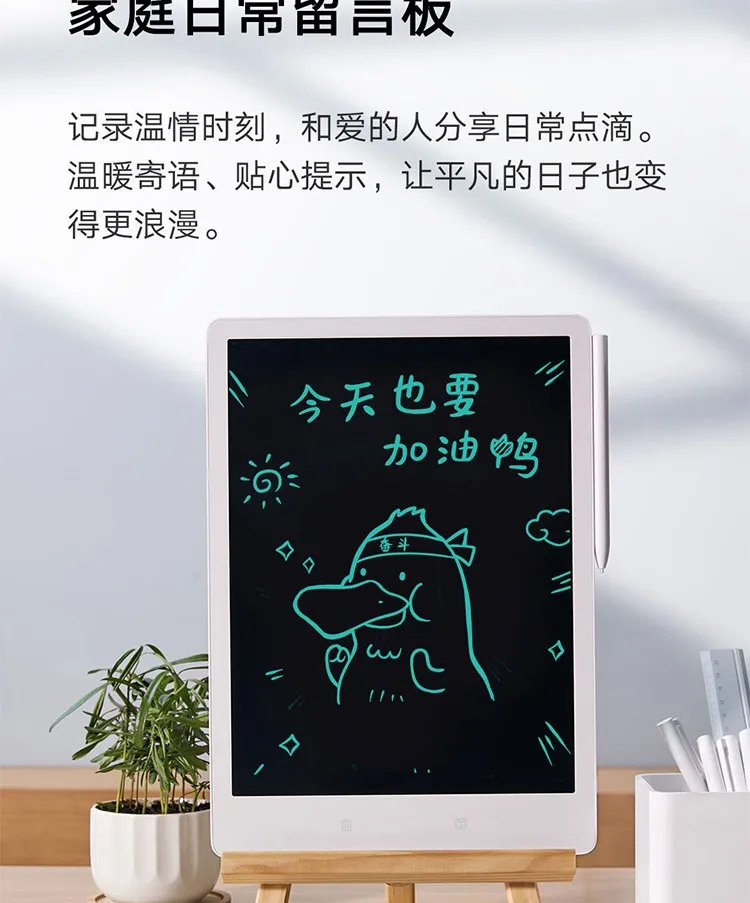 Описание:Xiaomi Mijia LCD маленькая доска с ручкой-Вы можете рисовать, когда захотите, записывайте момент вдохновенияЧувствительное к давлению письмо; Супер чистый почерк; Магнитное поглощение; Светильник, легко носить с собой.-Индивидуальная Формула ЖК-пленки, четкий почеркМаленькая доска Xiaomi Mijia LCD принимает индивидуальную формулу жидкокристаллической пленки, сине-зеленый почерк, четкий и привлекательный дисплей, как реальный опыт написания традиционной бумаги, так и плавный опыт ЖК-экрана.-Высокочувствительная технология определения давленияТолщина почерка меняется с силой.-Одна кнопка, чтобы очистить низкое энергопотребление, длительный срок службы батареи является более беззаботнымЖК-экран с нулевой мощностью потребляет только небольшое количество энергии, когда он очищается. Если вы удаляете 100 раз в день, аккумулятор кнопки используется для 365 дней.-Ультрамагнитный стилус-светильник для более удобного храненияВес ручки составляет всего 7 г, и вся машина использует четыре неодимовых магнита из железного бора, которые обладают сильной адсорбционной способностью и долговечной магнитной силой.-Ультратонкий корпус, легко носить с собойТонкий корпус 7 мм тонкий, светильник и портативный, что снижает нагрузку на путешествия.