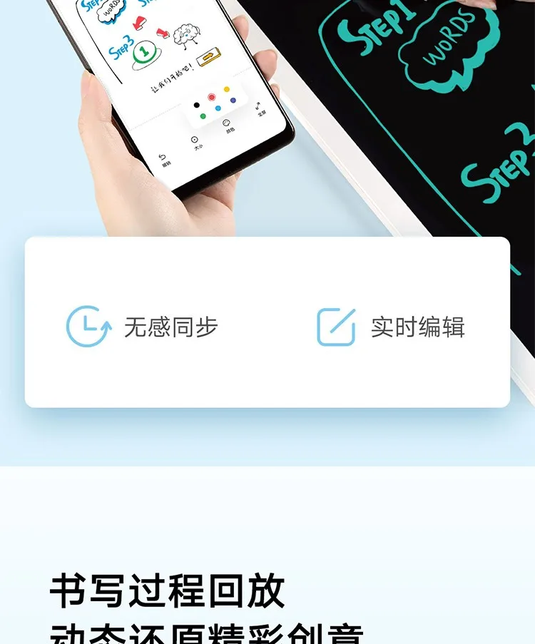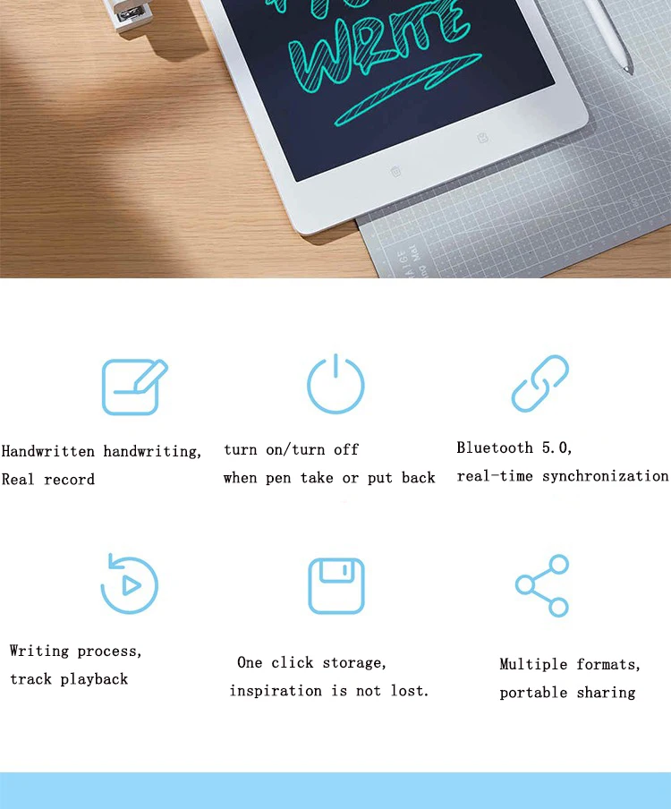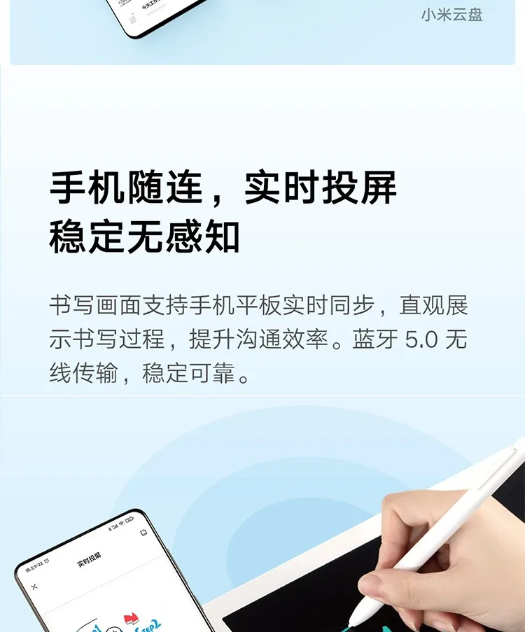 Экран записи поддерживает синхронизацию мобильных телефонов и планшетов в режиме реального времени, что интуитивно отображает процесс письма и повышает эффективность связи. Bluetooth 5,0 беспроводная передача, Стабильная и надежная.