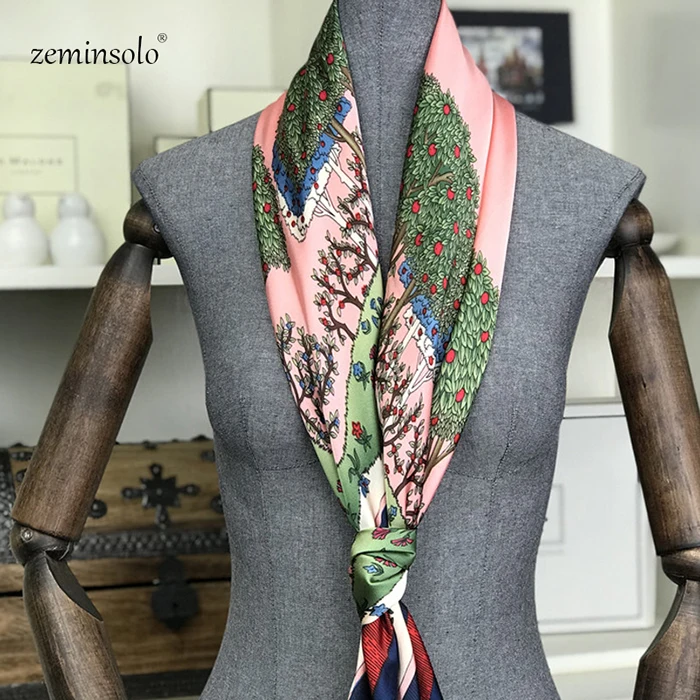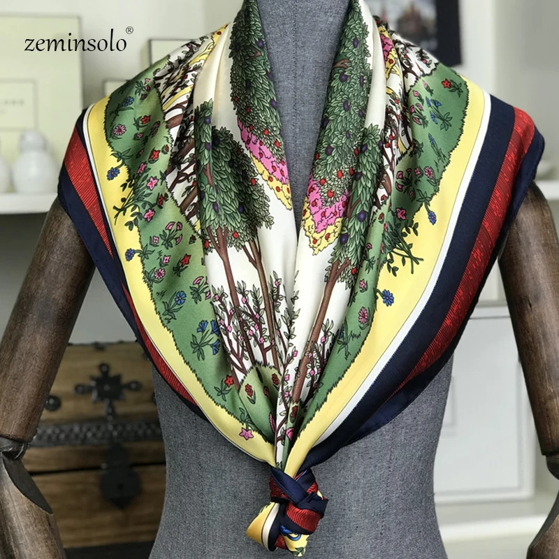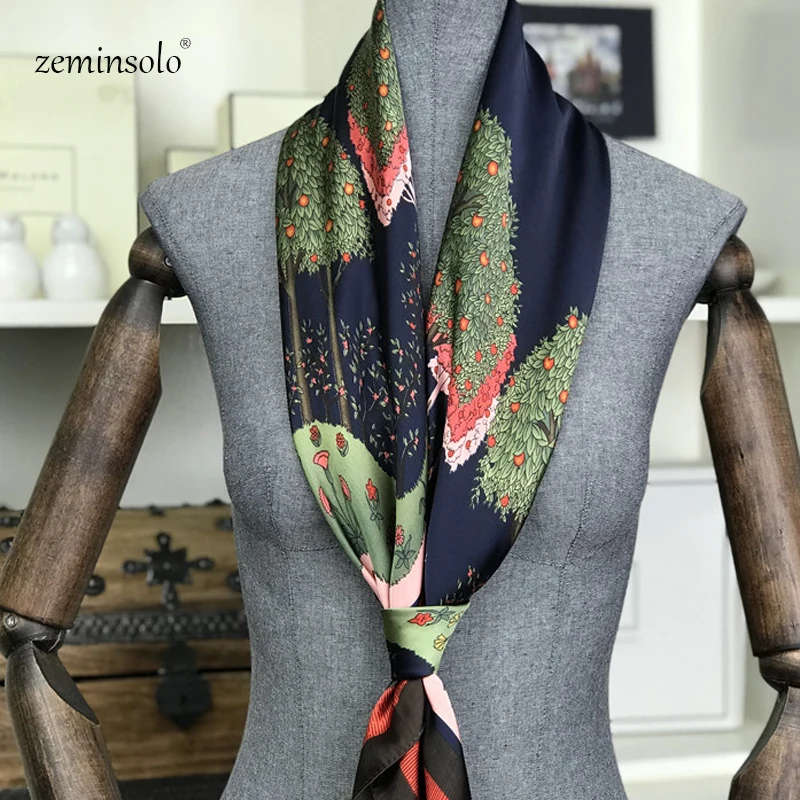 Роскошный брендовый шарф из 100% шелка, элегантные модные женские шарфы с принтом, квадратные шарфы 90*90 см, головной платок