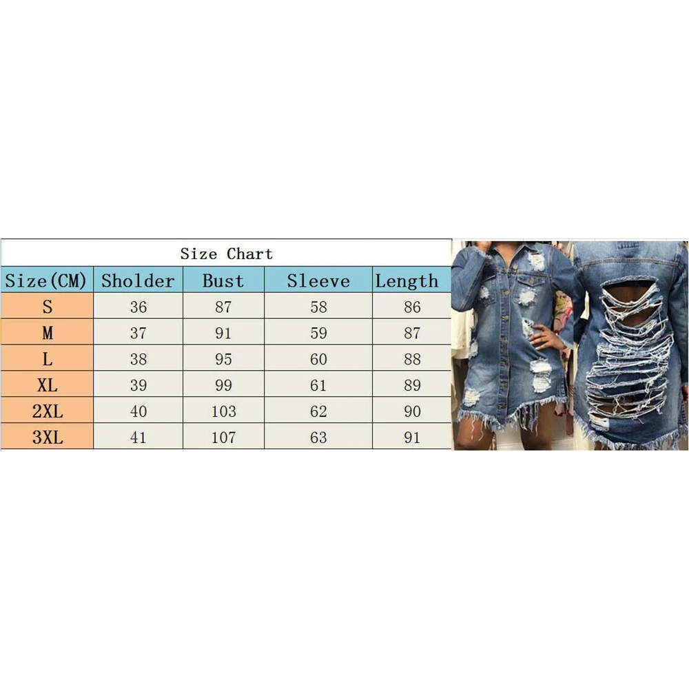 Женская рваная джинсовая куртка, длинная потертая куртка на пуговицах с длинным рукавом, потертая куртка с открытой спиной и вырезами, верхняя одежда